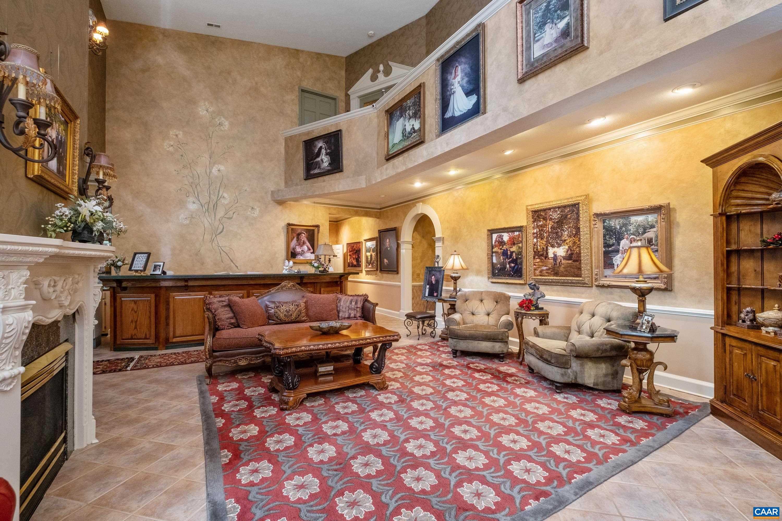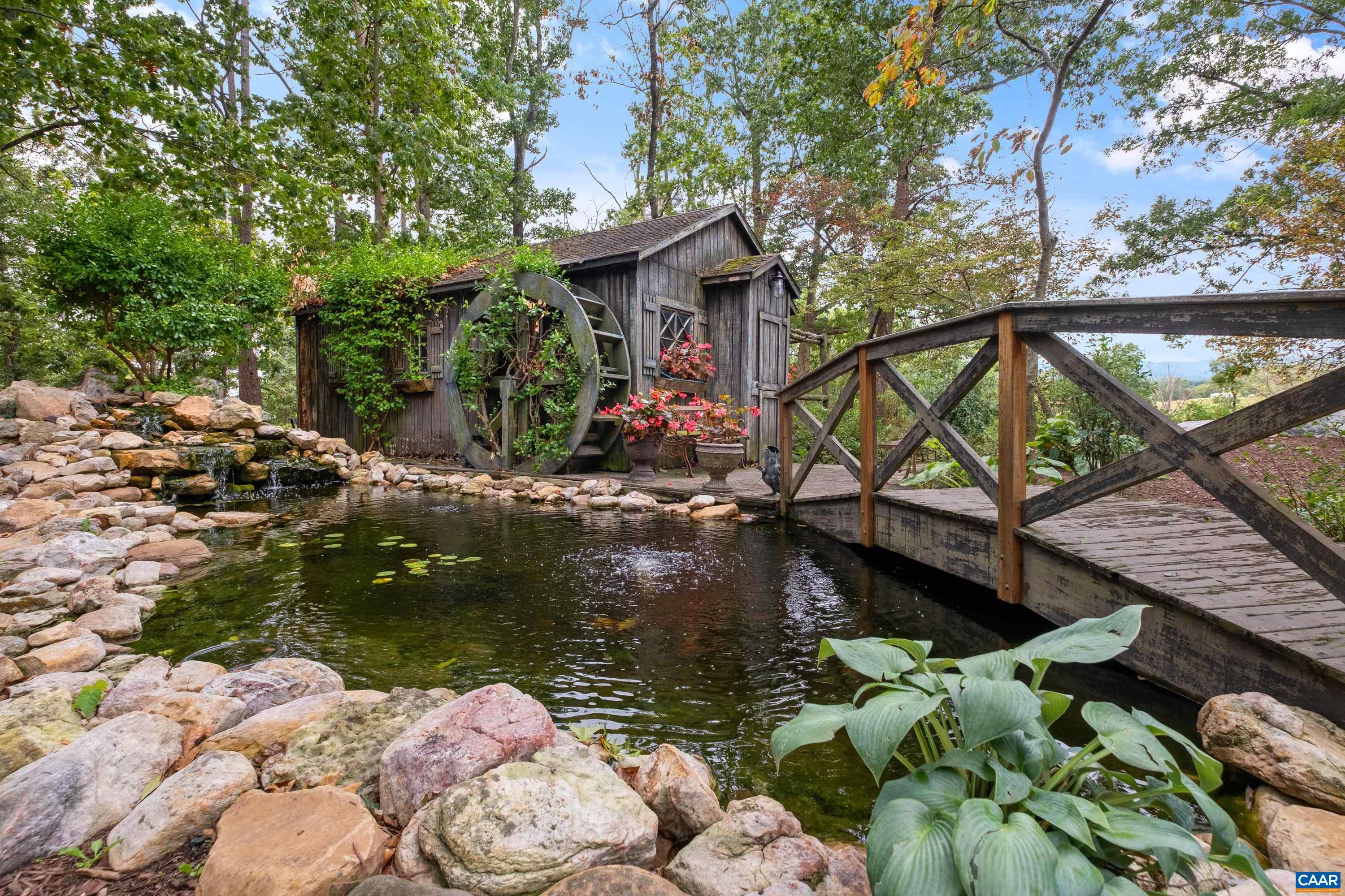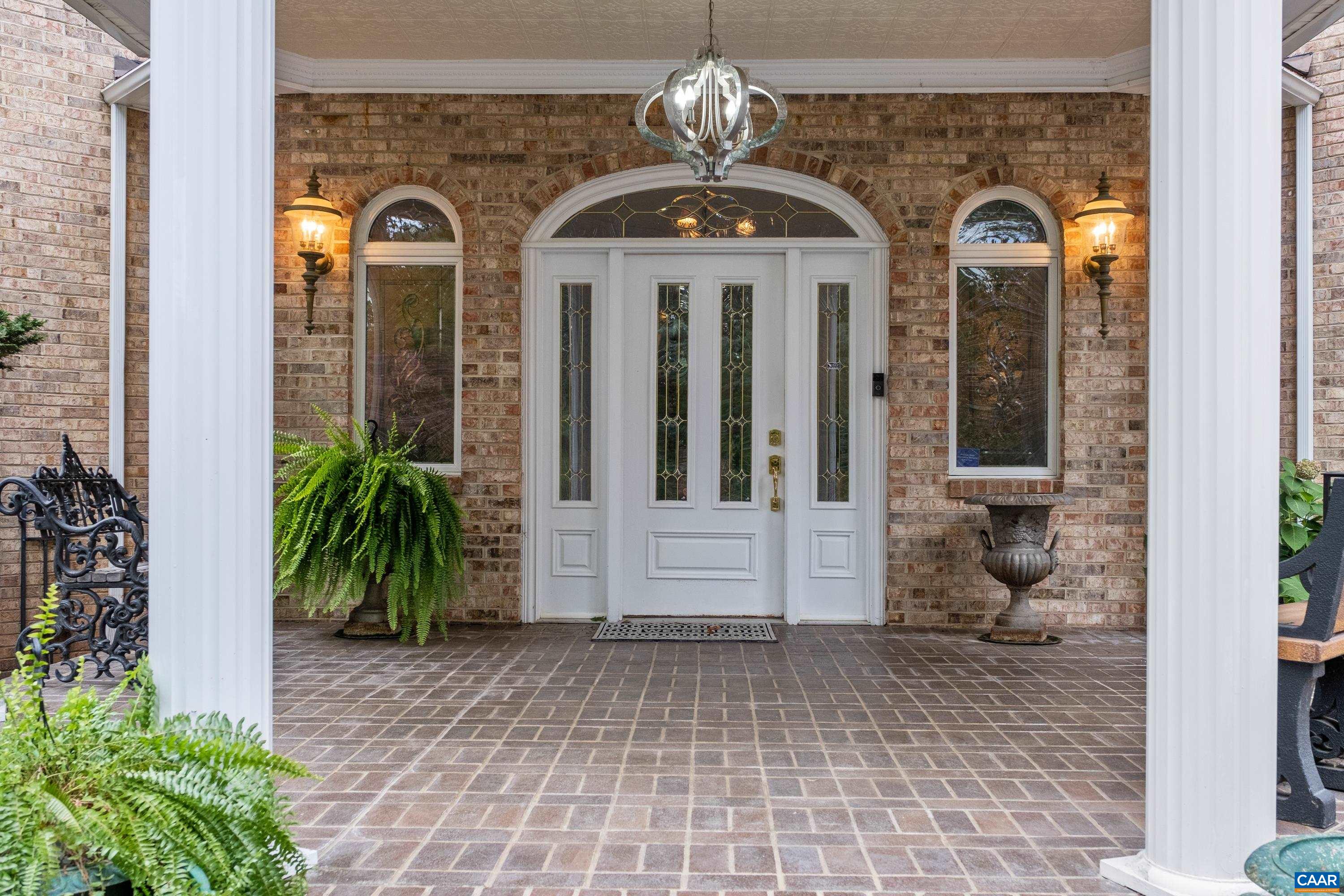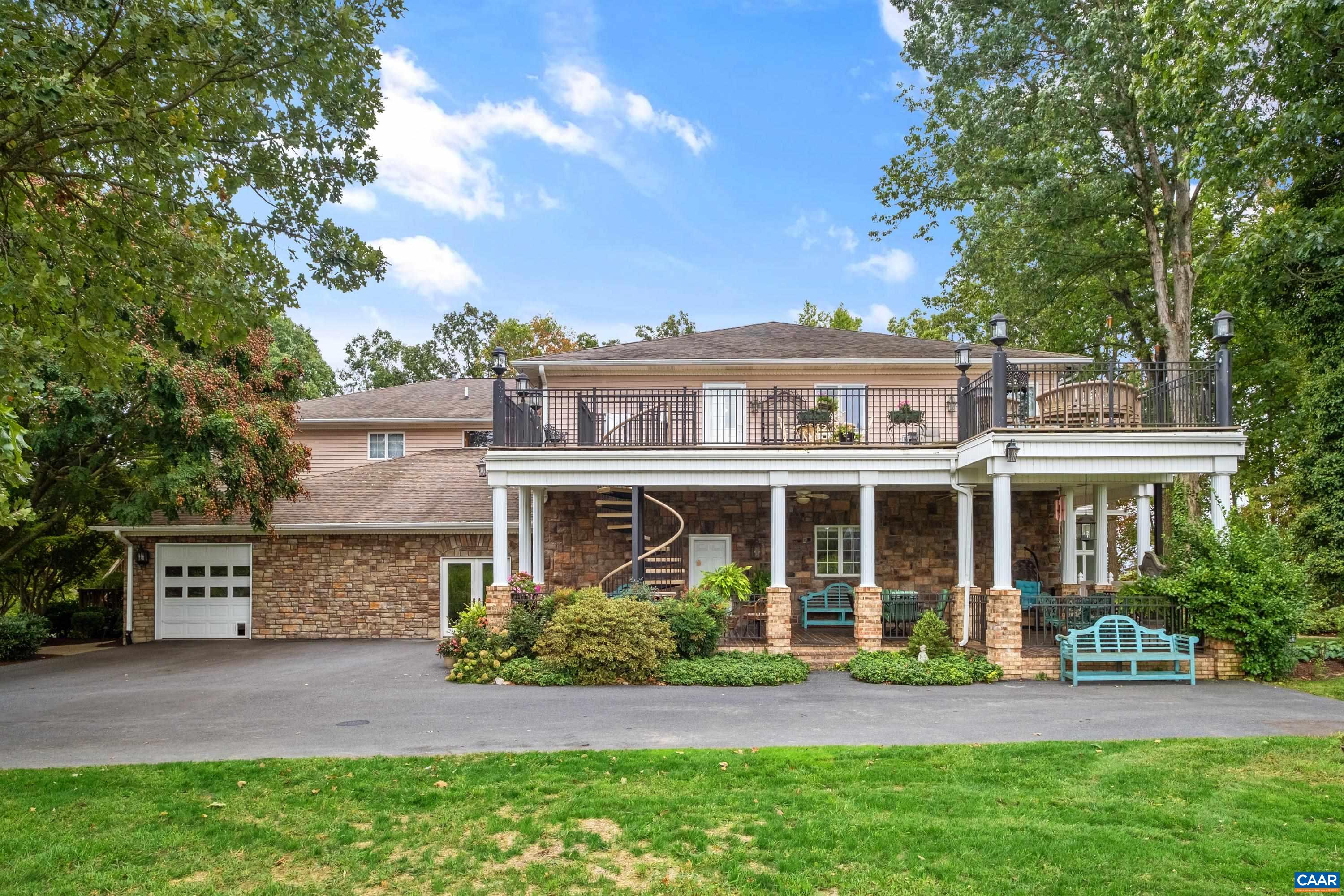 Beauty abounds at this exquisite French provincial style property, conveniently located on Route 33, near Massanutten. Enter through handsomely crafted stone pillars, with lights and an electric wrought-iron gate, and follow the driveway around the immaculately maintained grounds filled with lush landscaping. Grounds also feature a replica of the historic Mabry Mill, a pond, multiple courtyards, stone paths, walkways, and more. The exterior features expertly crafted quoin brickwork, arches, and stone masonry, with expansive covered brick patios. Enter the property through a grand front entrance into a large foyer and gallery/great room. The main level features a great room, kitchen, sunroom, multiple offices, workspace, and a production wing (currently used for business purposes). The second level features the residence with three primary bedroom and ensuite bathrooms, a luxurious dining room, a spacious kitchen with an island and plenty of countertop and cabinetry space. Throughout the property you will find exquisite detail and craftsmanship; including, custom trim, arch doorways and windows, grand pillars, high ceilings, + more. The property currently operates a business with a special use permit for a photography studio.