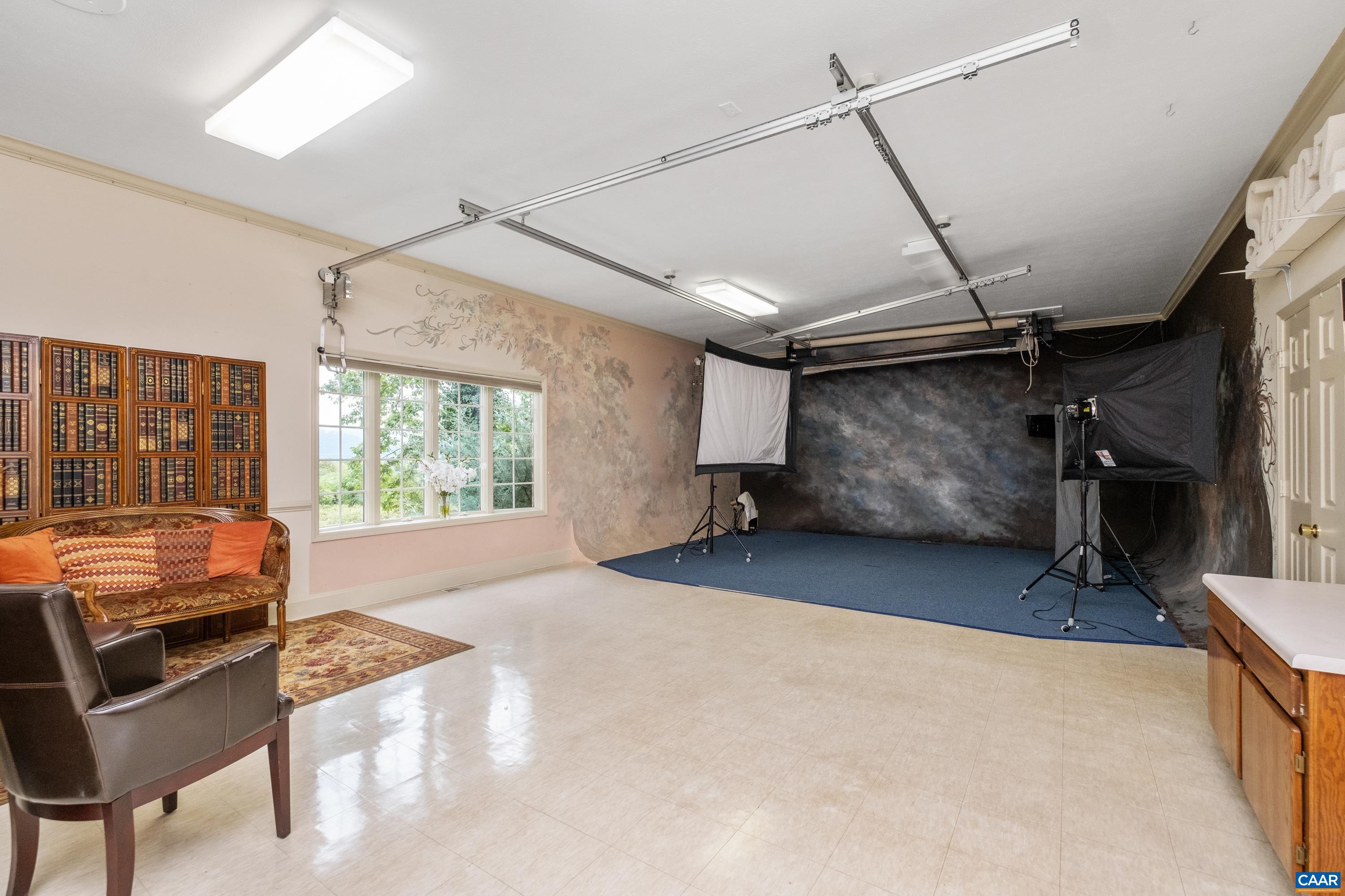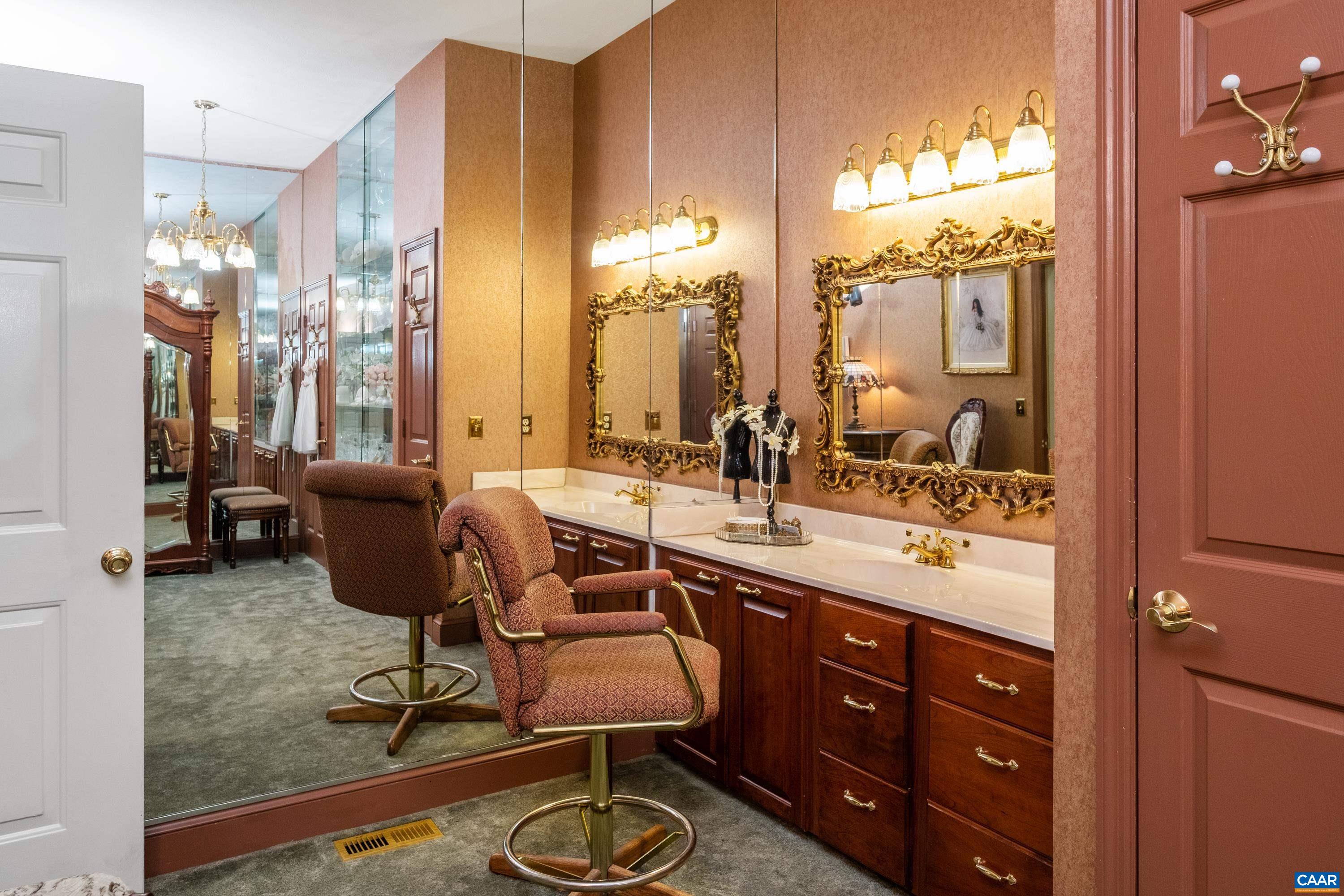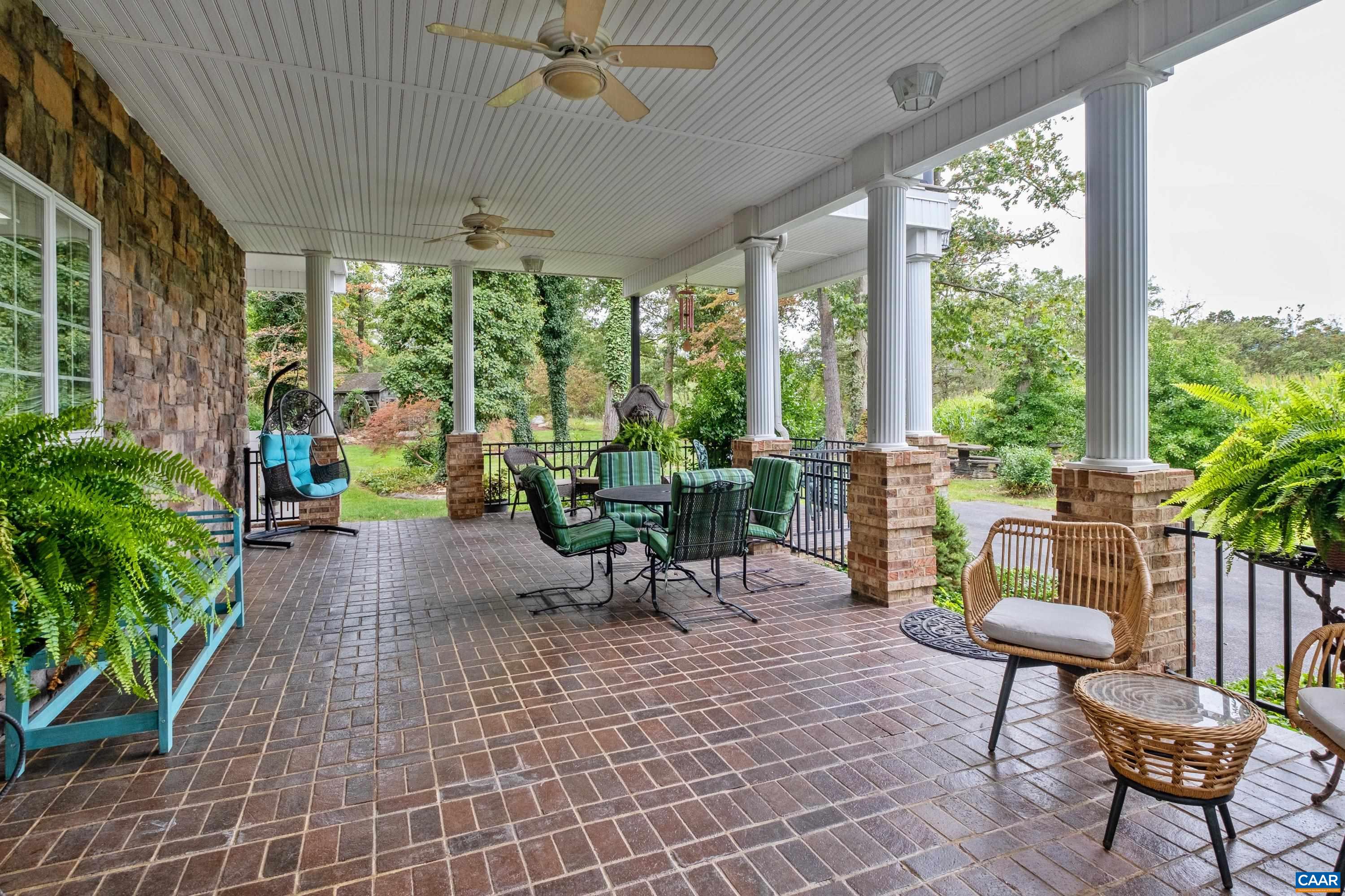 Beauty abounds at this exquisite French provincial style property, conveniently located on Route 33, near Massanutten. Enter through handsomely crafted stone pillars, with lights and an electric wrought-iron gate, and follow the driveway around the immaculately maintained grounds filled with lush landscaping. Grounds also feature a replica of the historic Mabry Mill, a pond, multiple courtyards, stone paths, walkways, and more. The exterior features expertly crafted quoin brickwork, arches, and stone masonry, with expansive covered brick patios. Enter the property through a grand front entrance into a large foyer and gallery/great room. The main level features a great room, kitchen, sunroom, multiple offices, workspace, and a production wing (currently used for business purposes). The second level features the residence with three primary bedroom and ensuite bathrooms, a luxurious dining room, a spacious kitchen with an island and plenty of countertop and cabinetry space. Throughout the property you will find exquisite detail and craftsmanship; including, custom trim, arch doorways and windows, grand pillars, high ceilings, + more. The property currently operates a business with a special use permit for a photography studio.