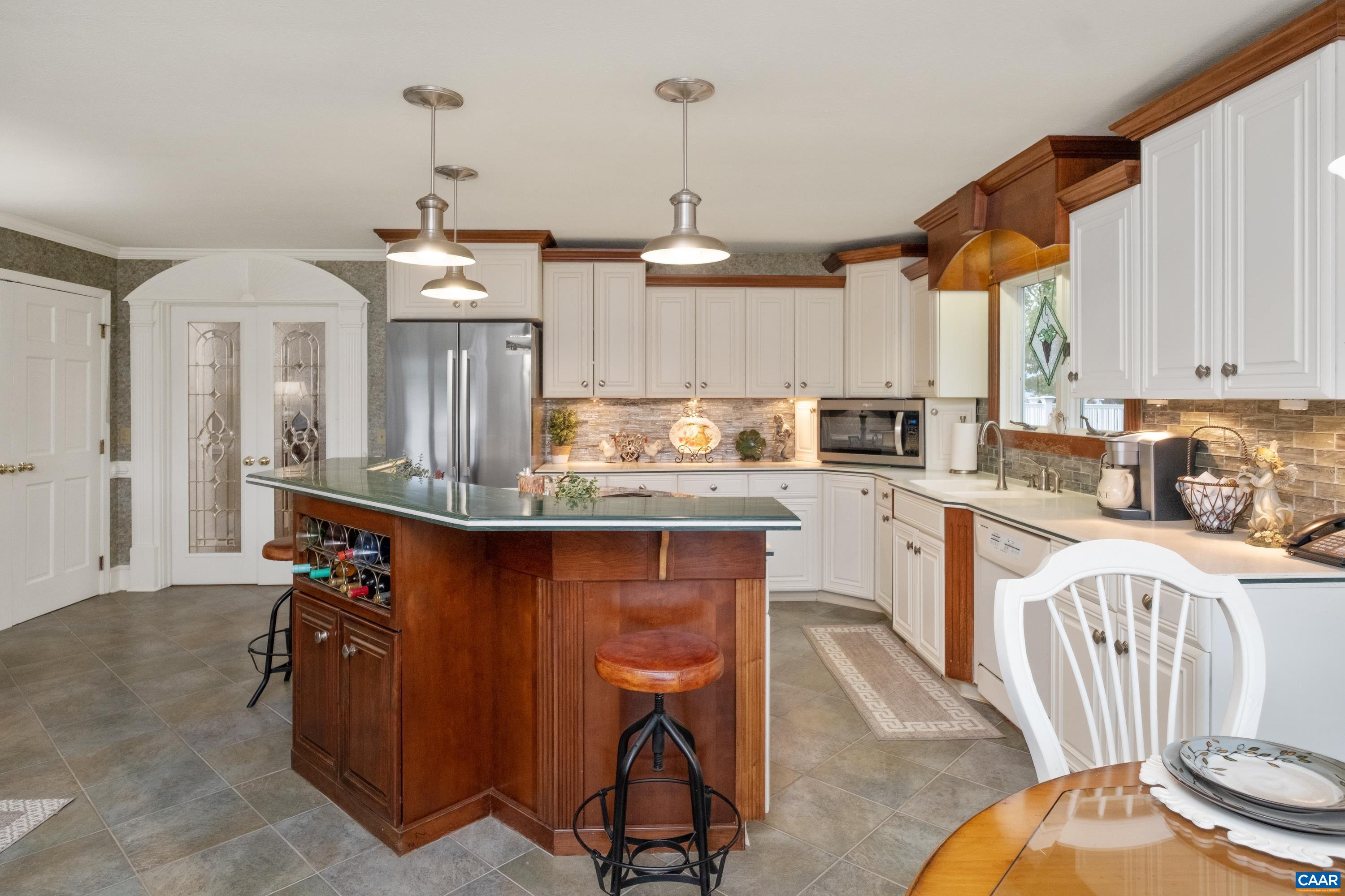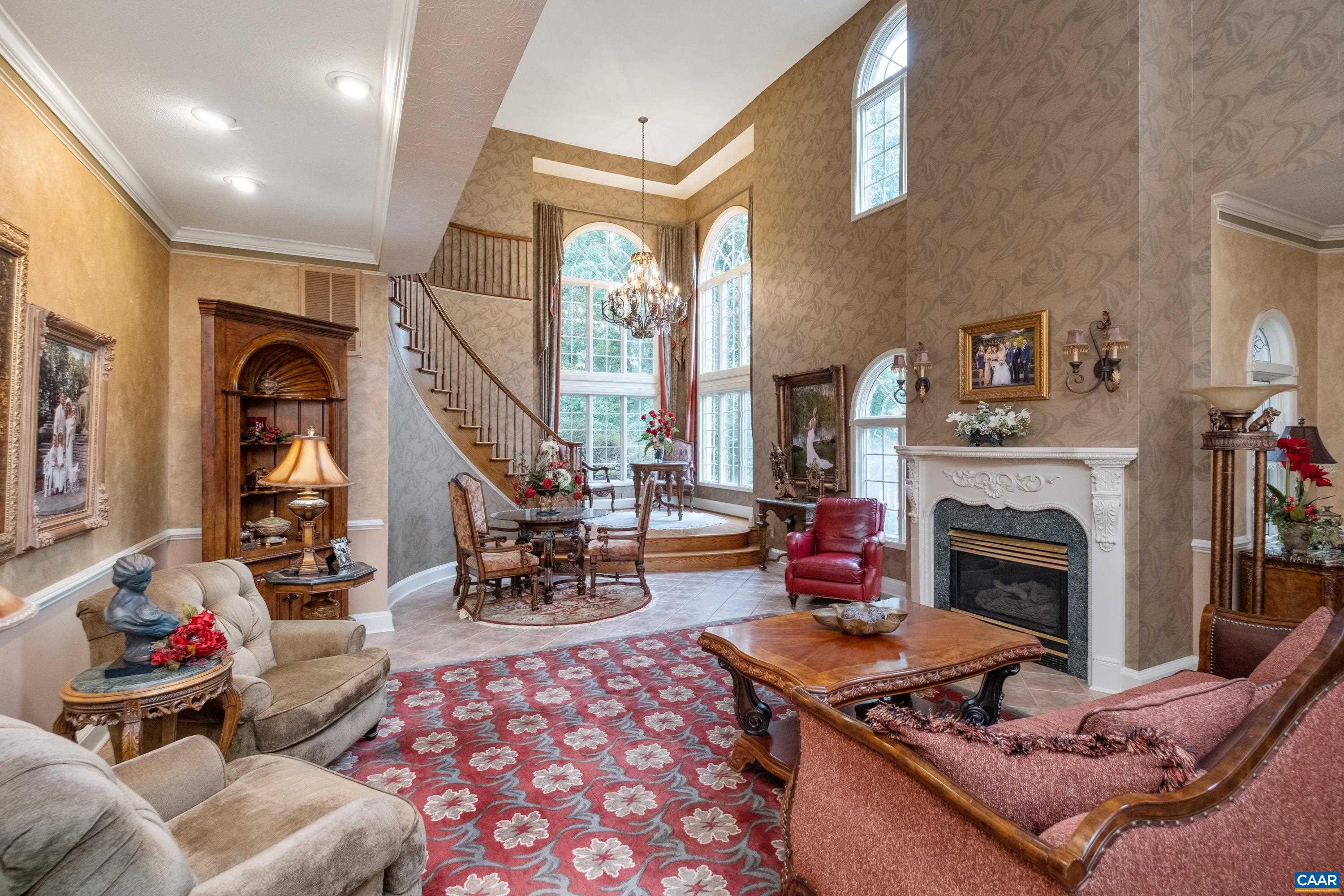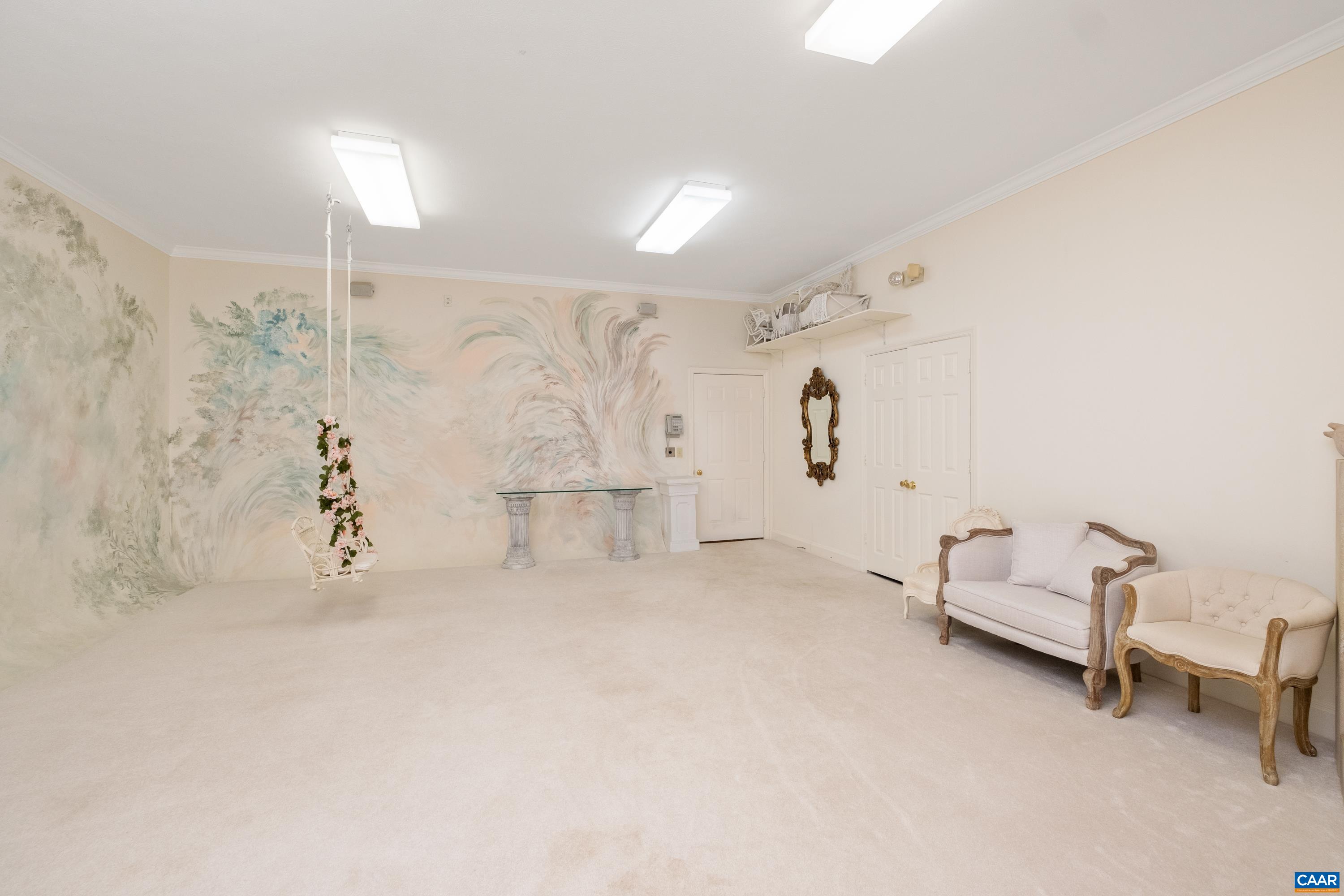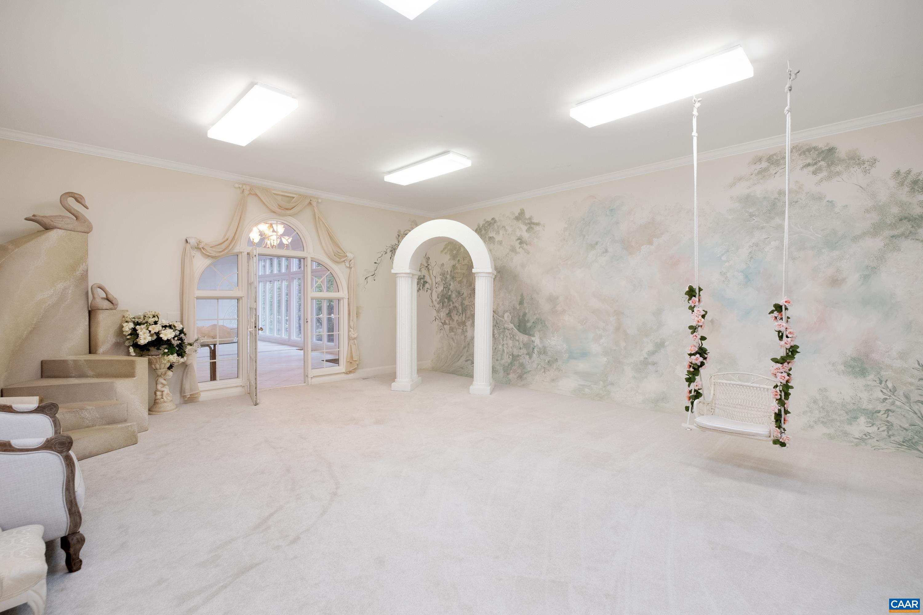 Beauty abounds at this exquisite French provincial style property, conveniently located on Route 33, near Massanutten. Enter through handsomely crafted stone pillars, with lights and an electric wrought-iron gate, and follow the driveway around the immaculately maintained grounds filled with lush landscaping. Grounds also feature a replica of the historic Mabry Mill, a pond, multiple courtyards, stone paths, walkways, and more. The exterior features expertly crafted quoin brickwork, arches, and stone masonry, with expansive covered brick patios. Enter the property through a grand front entrance into a large foyer and gallery/great room. The main level features a great room, kitchen, sunroom, multiple offices, workspace, and a production wing (currently used for business purposes). The second level features the residence with three primary bedroom and ensuite bathrooms, a luxurious dining room, a spacious kitchen with an island and plenty of countertop and cabinetry space. Throughout the property you will find exquisite detail and craftsmanship; including, custom trim, arch doorways and windows, grand pillars, high ceilings, + more. The property currently operates a business with a special use permit for a photography studio.