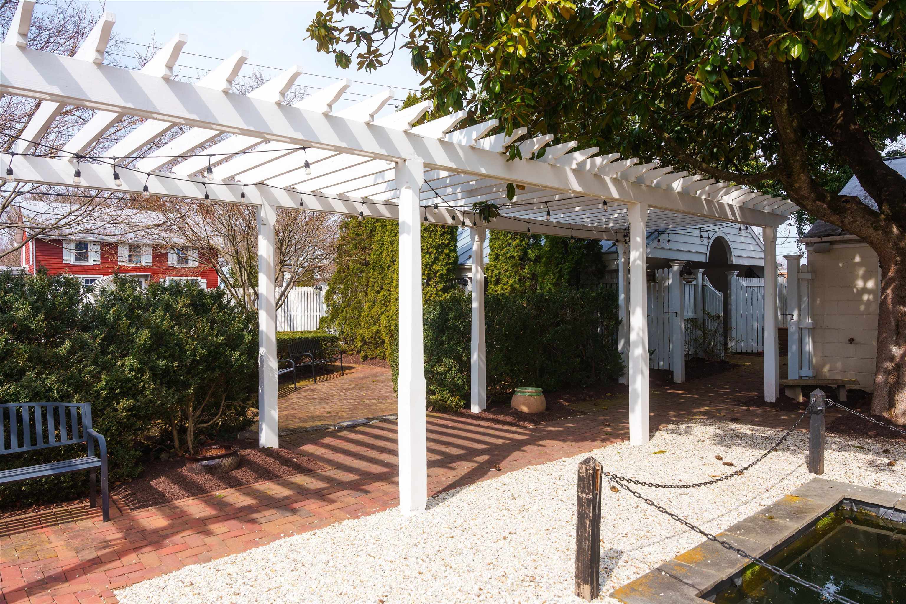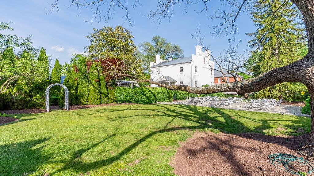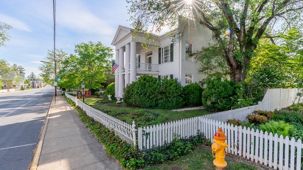 Timeless and versatile, 111 S Main St in Bridgewater is a beautifully restored 1849 Greek Revival manor currently operating as a successful event venue—but also perfectly suited as a distinctive private residence (via special use permit). Set on a meticulously maintained half-acre in the heart of historic Bridgewater, this 4,000+ sq ft property features 3 bedrooms, 3 baths, soaring white columns, rich architectural character, a basement parlor, and four wood-burning fireplaces (currently capped). Modern updates include central air, a recently replaced metal roof, and a detached garage added in 2001. Outdoor highlights include formal gardens, a serene reflecting pool, and the iconic “wedding tree”—a massive walnut that serves as a breathtaking ceremony backdrop. Additional structures include the Magnolia Cottage (with half-bath) and Dinkle Pavilion (carport/garage), offering flexible use for guests, offices, or creative space. With event capacity for up to 150 guests and a layout that blends elegance and function, this is a rare opportunity to own a piece of history with strong business income potential—or to reimagine it as a truly exceptional personal home in one of Virginia’s safest and most charming towns.
