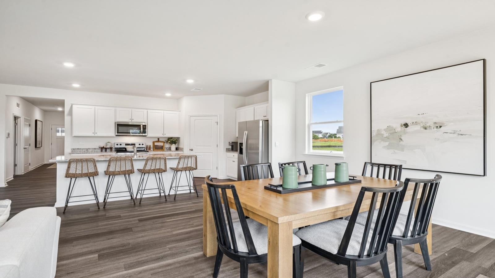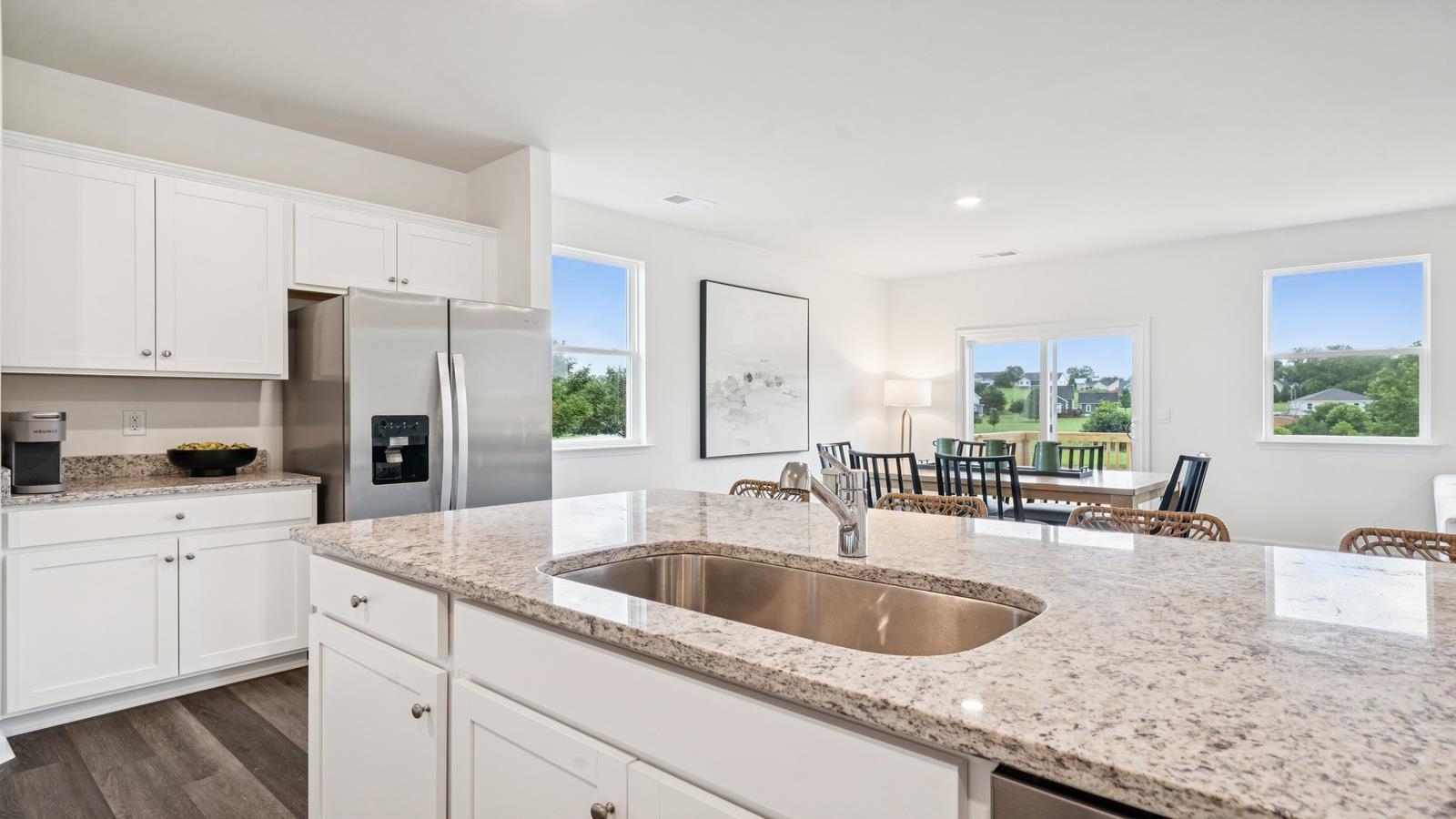 QUICK MOVE-IN! Welcome to this charming ranch-style home, offering 1,698 square feet of comfortable, one-level living designed with ease and convenience in mind. With 4 bedrooms and 2 baths, this thoughtfully designed floorplan features an open concept that seamlessly connects the spacious living, dining, and kitchen areas—perfect for both everyday living and entertaining. Step outside to a large deck or patio, ideal for relaxing on warm evenings or hosting friends and family. The 2-car garage provides ample space for parking and storage, while the low-maintenance exterior ensures you can spend more time enjoying life and less time on upkeep. This home combines practicality, comfort, and modern style, making it a perfect fit for those seeking a carefree, maintenance-free lifestyle.