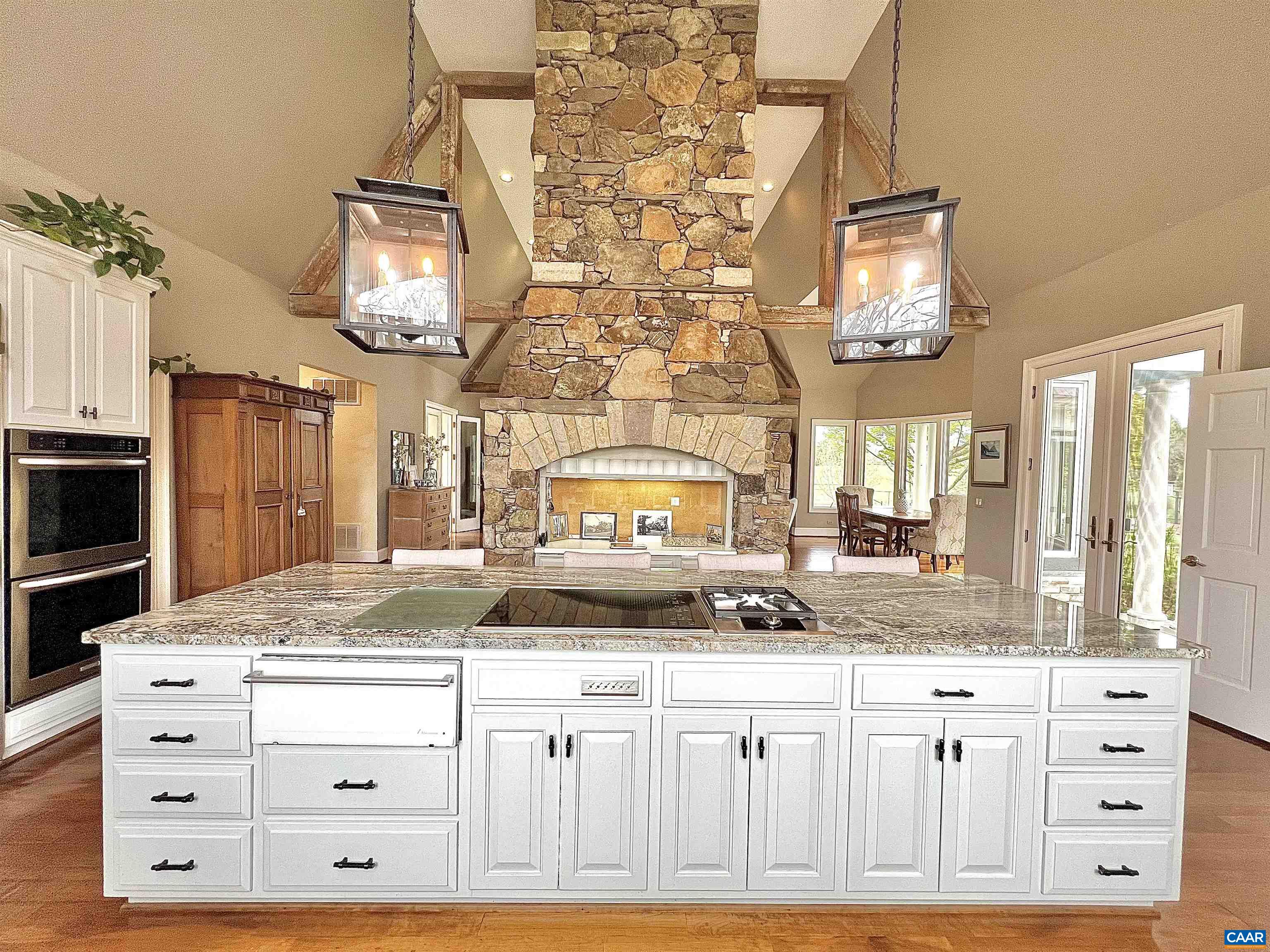 Drive under a Willow Oaks lined, canopied driveway, flanked by mountains, & enjoy the pond & pastoral views, leading to this magnificent English country estate home. Fall in love with picturesque walking trails around this unique wildlife rich property, which also features a pool, tennis/sport court, stream & barn. Entering the home, immediately fall in love with the bucolic views highlighted in the conservatory, featuring a blistered poplar wet bar. Spacious living areas with mountain views & access to private patios. The great room & kitchen feature soaring 20' ceilings, solid Cherry hardwood floors, & hand-hewn beams, reclaimed from a 200-year-old Virginia barn. Custom built fireplace was hand laid by a local artisan. Enjoy a kitchen designed for function, family & entertaining featuring a 11-ft granite island, Wolf induction & gas cooktop, dual KitchenAid dishwashers, 48†refrigerator. Vintage, Venetian glass doors open to the wine cellar. 1st floor & 2nd level primary bedroom options. All bedrooms have ensuite baths with access to patios & balcony views. The guest wing has two bedrooms, kitchenette, and full bathroom. New composite roof. New pool liner & cover. Room for horses! Video tour and 3D tour links avail. by request.