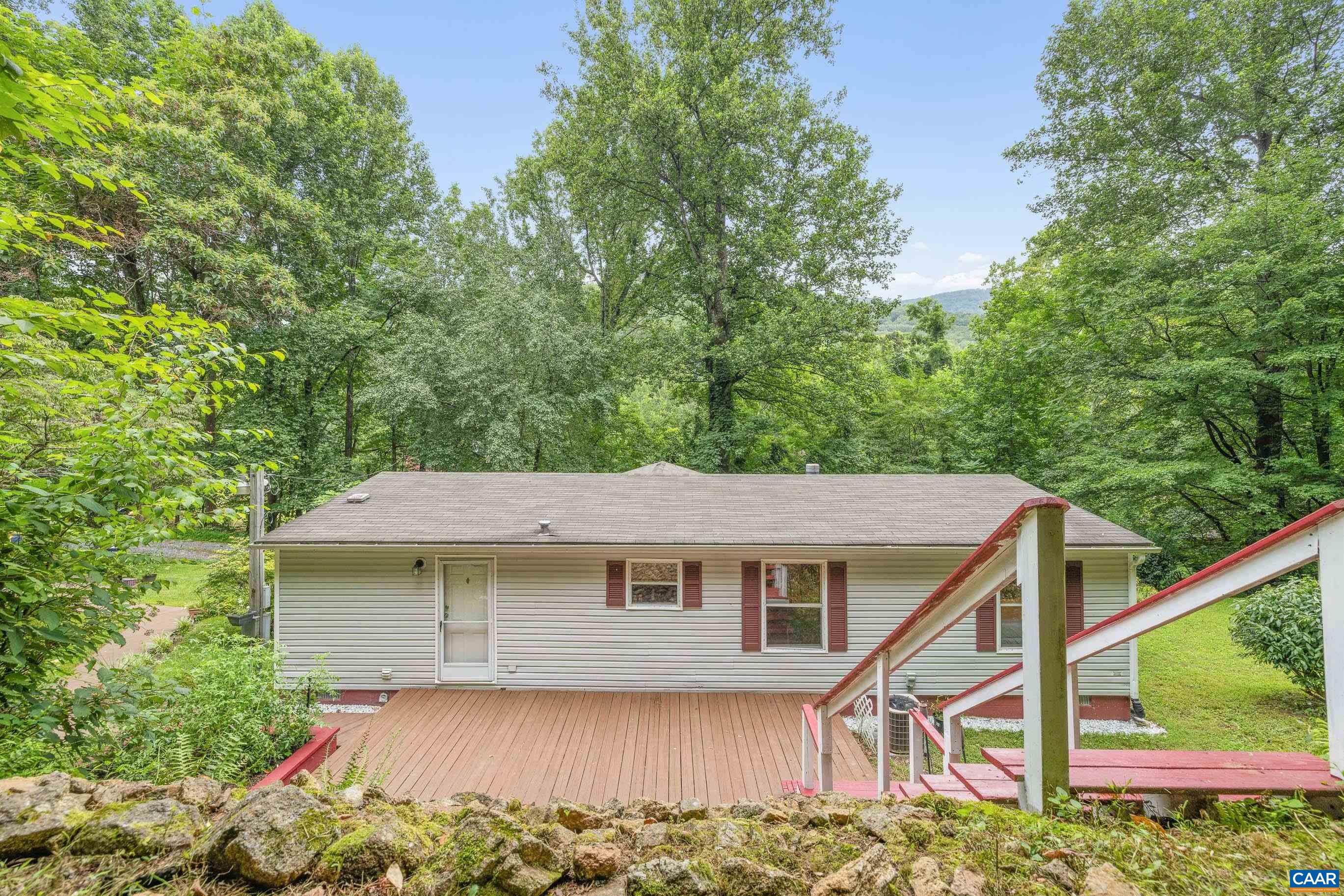 Your Private Oasis awaits you! Welcome to the country and enjoy 7 acres of peace and quiet on your mountainside retreat while mere minutes to the famed 151 corridor, Blue Toad Orchard, Devils Backbone, Wintergreen, Blue Ridge Pkwy, and so much more! Lush vegetation surrounds this nicely appointed MOVE-IN READY one-level rancher with new flooring, new cabinets, newer appliances, fresh paint, and lovely lighting fixtures! Enjoy a sip of coffee under a light rain on your covered front porch while listening to the birds chirp for joy! Fire up the grill on your oversized rear deck, then enjoy conversations with family and friends over the crackling of a fire on a cool evening at your fire pit! Take in the mountain views from your hilltop terrace, and enjoy the stargazing on a clear night! Plenty of storage awaits your outdoor yard equipment in your shed/workshop, which is equipped with electricity. The dogs even have their own fenced-in space to run and play! You're always connected with fiber optic internet, which makes working from home, streaming movies, and gaming, a cinch! Create your nature walking trails and really enjoy the beauty of indoor and outdoor living, mixed with the peace and quiet that nature has to offer!