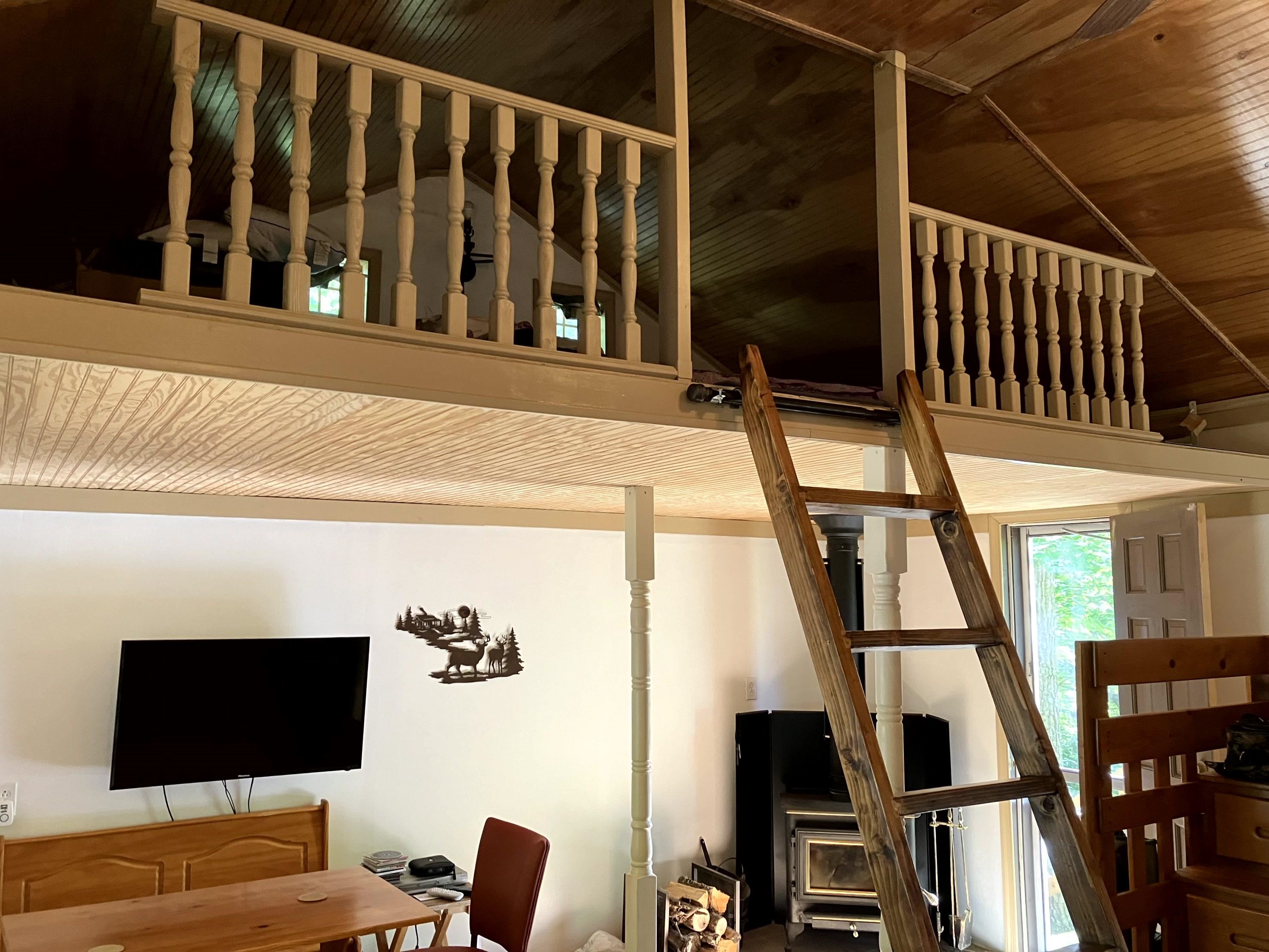 Quiet one room cabin with loft, nestled in the woods. Come enjoy the new back deck and unwind after a hard work week. This easy to maintain cabin is situated on 2.8 acres. Cabin is plumbed for water to wash dishes and clean up. Former owners have simply brought a water tote and hooked it up to enjoy the weekend. There is an outhouse for the adventurous types and a swedish composting toilet inside for a more modern way of going. Come relax, play horseshoe, and enjoy the quiet. Plenty of birds and other wildlife to enjoy off the back deck or spend sometime around the campfire roasting marshmallows. There are beds to accommodate up to 4 people. Small wood burning fireplace will keep you cozy on the more chilly nights.