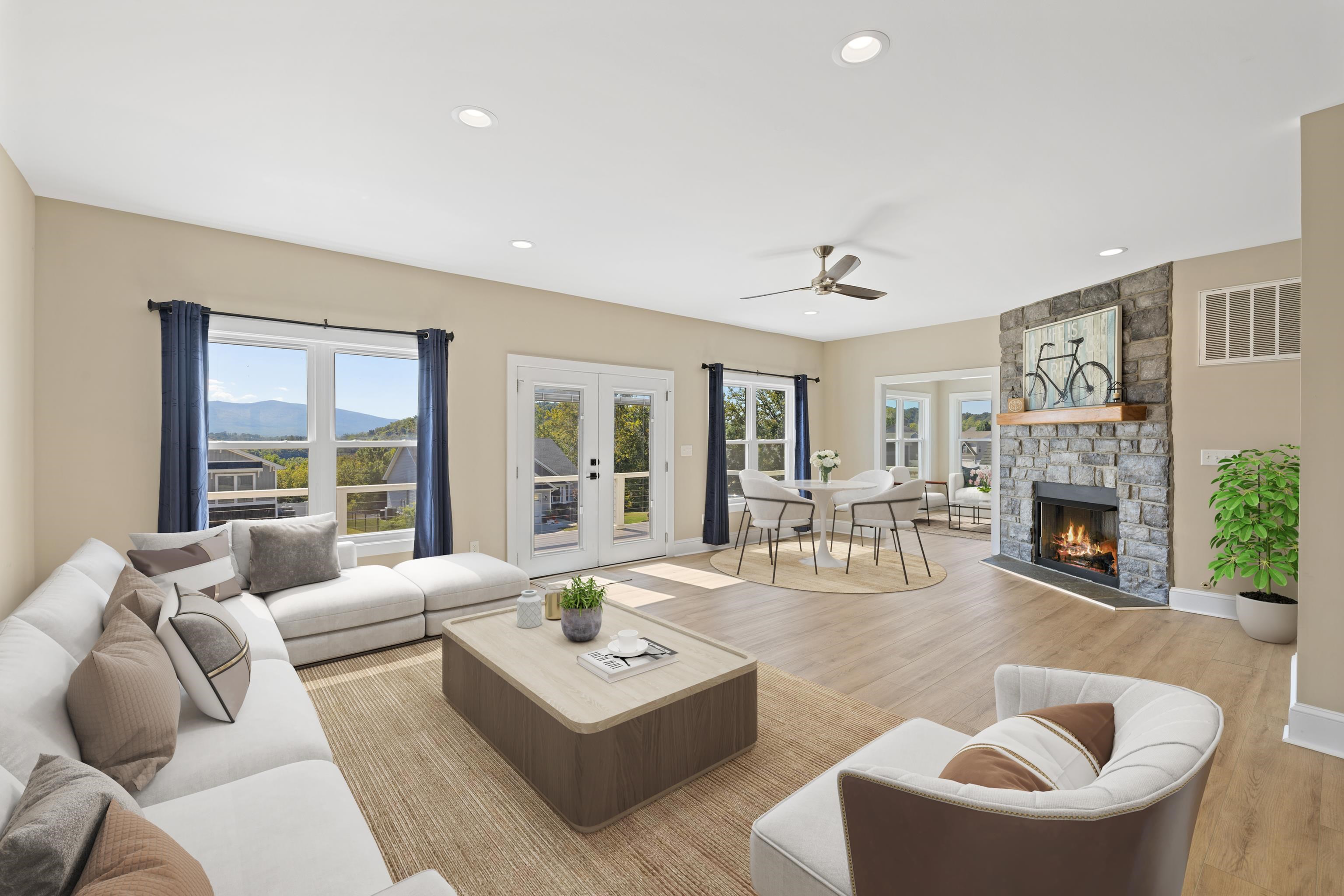 Dare to be different! With beach house vibes facing the Blue Ridge Mountains, this creative showpiece offers views that will have you seeing BLUE all day long. Spanning over 3,500 sq ft over 3 levels, there’s room for everyone. The ground floor includes a family room, oversized garage (almost 3-car!), and full bath. The second level is entertainment central—open layout with stacked-stone fireplace, gourmet kitchen with stainless & quartz, and access to a huge Trex deck overlooking the mountains. The primary suite connects to a sunny home office or nursery. Upstairs, 3 large bedrooms crown the home. All this in Gladiator Country, Riverheads Schools. One-of-a-kind living!