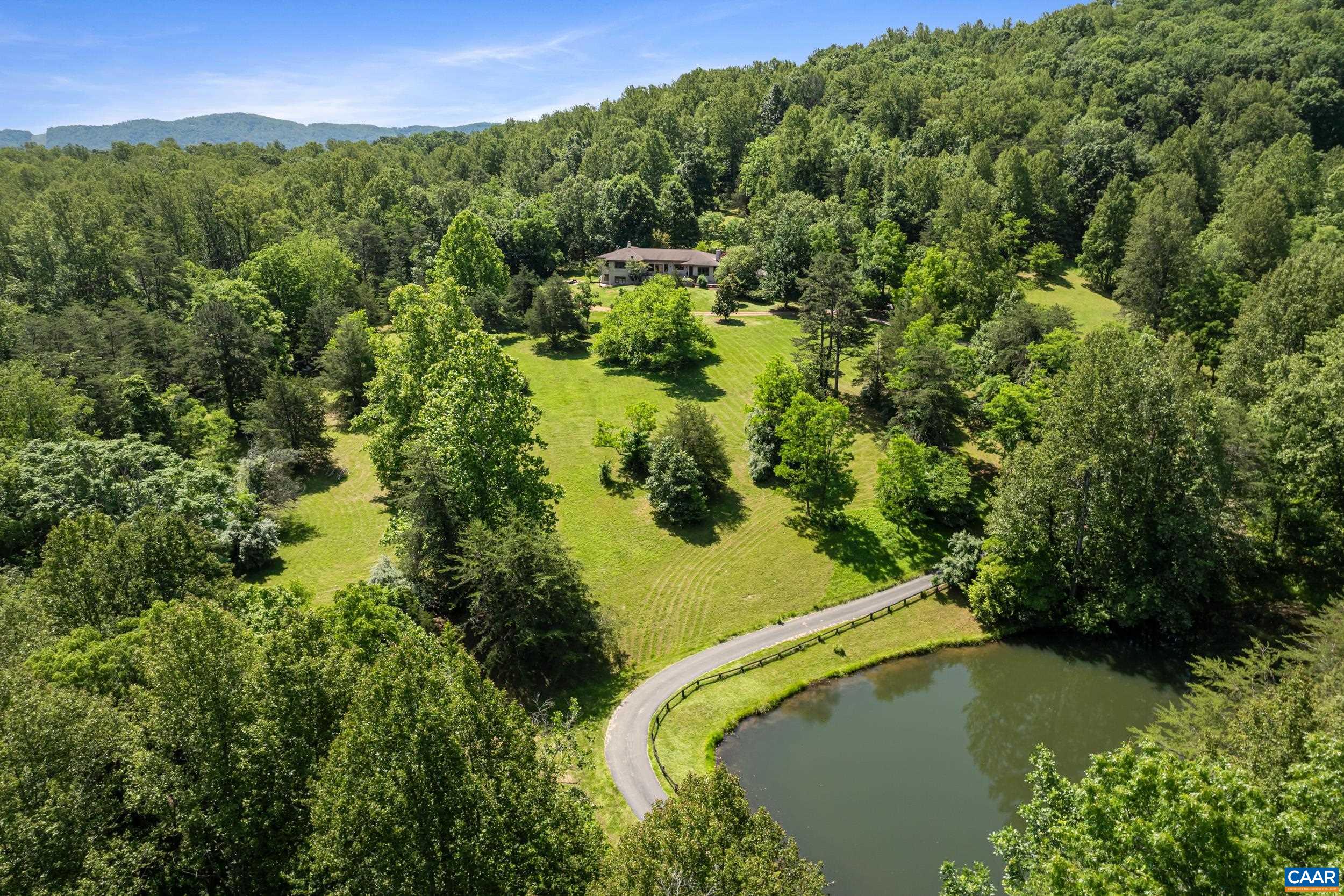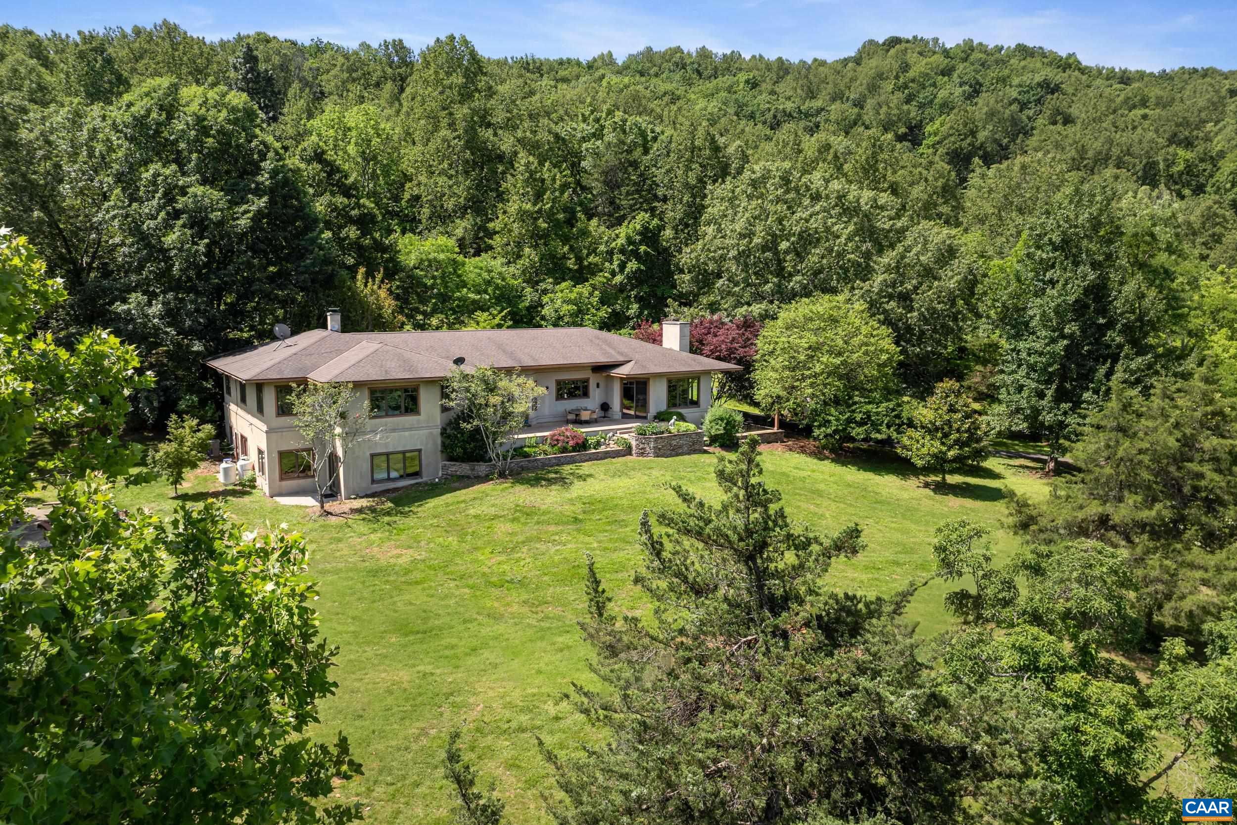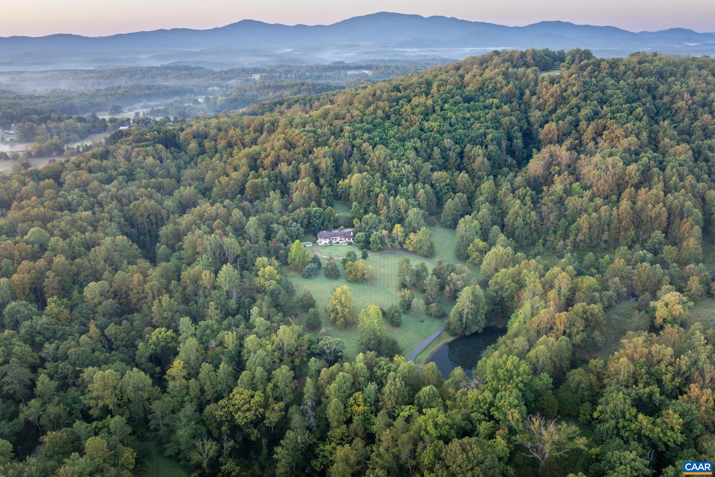 Set against the backdrop of Yellow Mountain, this tucked away 24-acre sanctuary offers the ultimate blend of elegance and convenience. Just minutes from Crozet and Charlottesville, this custom built residence was designed by architect Dawn Rowe to frame SWEEPING YEAR-ROUND MOUNTAIN VIEWS and is crafted with gorgeous cherry woodwork, built-ins and cabinetry coupled with refined architectural details and an outstanding floor plan. Blue Ridge views from every Western facing window! MAIN LEVEL LIVING with versatile spaces including dedicated home office and terrace-level guest quarters with private entrance, rec room, 2 bedrooms and baths, kitchenette plus fabulous storage. Ideally set up for 2+ generations. Quiet, efficient geo-thermal HVAC system. Expansive invisible fence. Approximately 1/3 of the acreage is open. Glorious patio with soothing water feature, elevated fire pit area and stream-fed pond create an idyllic setting for entertaining, recharging and making memories. Whether hosting weekend gatherings or enjoying the region’s wineries, hiking trails or sporting events, this estate embodies the VERY BEST of Western Albemarle. See documents for full list of features and improvements.