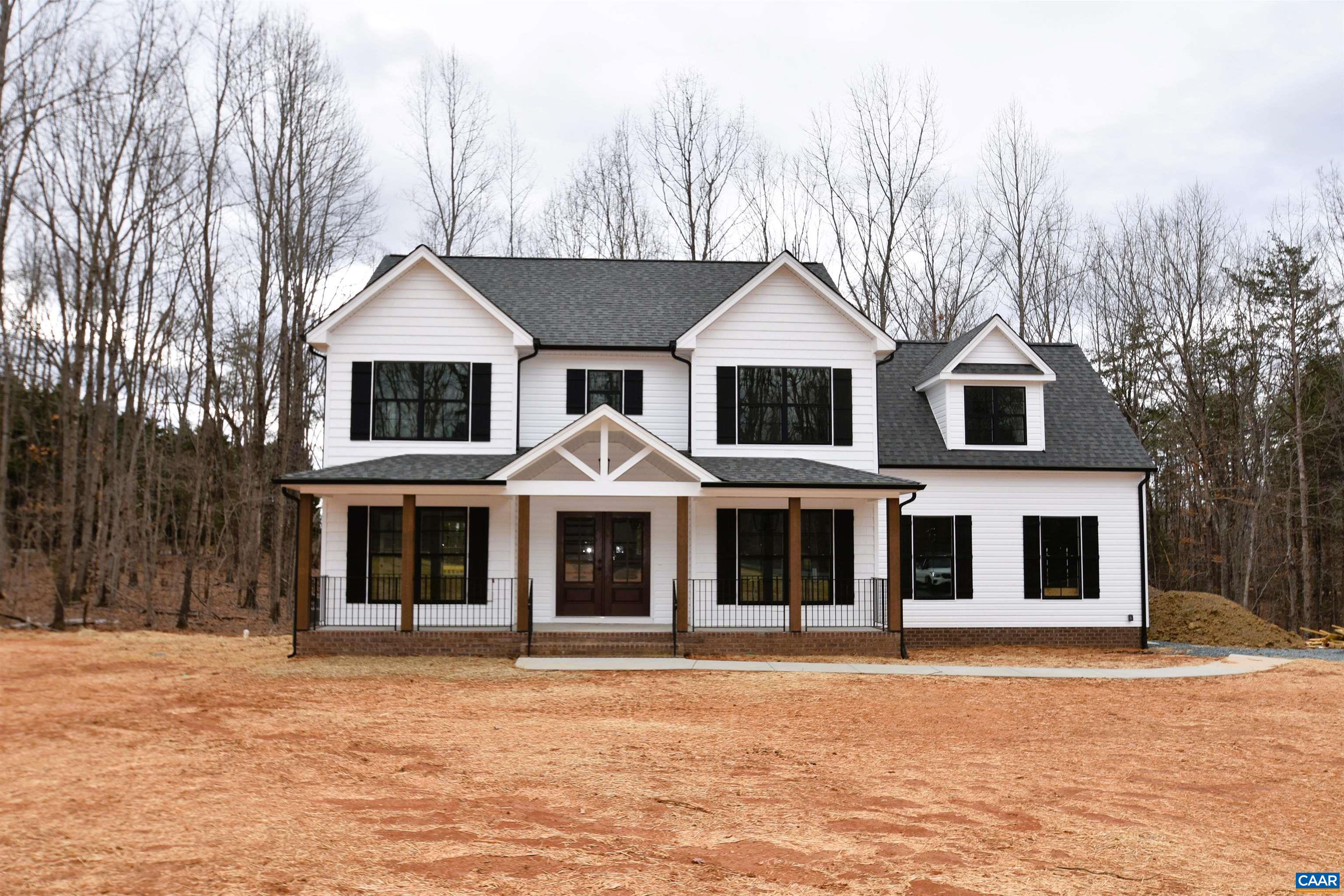 TO BE BUILT, the JOANNA model is located near the Fluvanna and Goochland line for an easy commute to Charlottesville or Richmond! Upgrades are found throughout! Exterior upgrades include Board Batt siding, wide window trim, stained French front door and 8” columns, wood look garage door with opener, full brick front porch with iron railings, extra lighting and windows, upgraded grid pattern, and 12x14 rear deck. Interior upgrades include engineered hardwood floors throughout the main level, trim package in dining room, French door in the home office, great room with gas fireplace and extra LED lights, gourmet kitchen with built in stainless wall oven and microwave, farmhouse sink, wood range hood, drawer stack cabinet, an oversized 3x6 island with pendant lights and alternate color cabinets, quartz countertops, gas range, Tier 2 36” cabinets with 3 piece crown molding and under cabinet lighting. Oak stairs with iron railings, spacious primary with 2 walk in closets and bathroom with 5’ tile shower, transom window and tile flooring. All bedrooms have ceiling fans. Laundry room, pull down attic, and 2 zone HVAC finish off this new home! Old barn conveys. Ask how you can save $7,500 in seller paid closing costs. Spring completion!