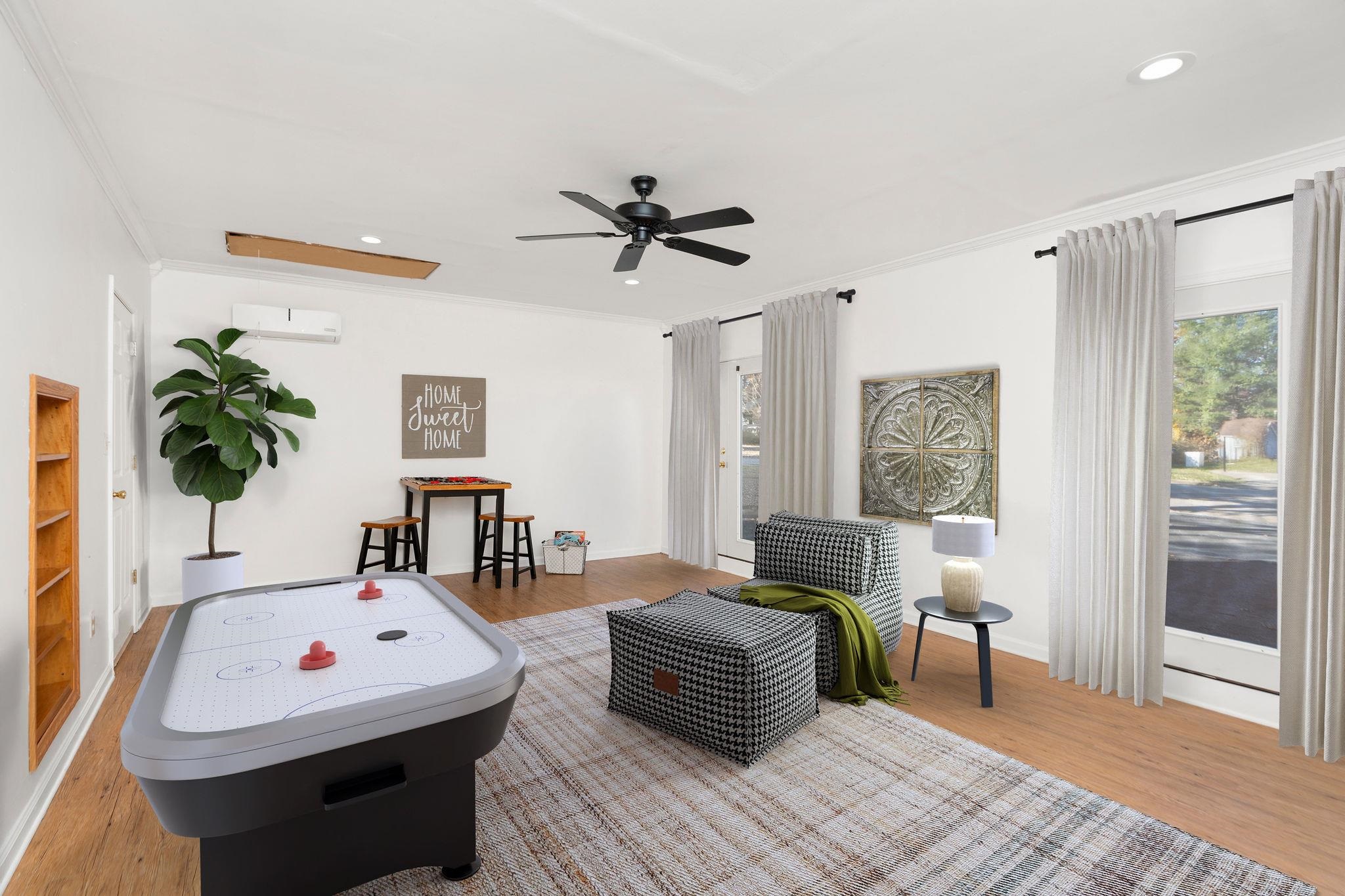 Dare to be different! This contemporary cutie in Ridgeview Acres has personality, space, and style to spare. With over 2,200 sq ft, it features an open great room with soaring ceilings, main-level bedroom, and two more large bedrooms upstairs. The oversized family room makes the perfect rec room or teen hangout. (bring the pool table!) Step outside to a fenced yard shaded by mature trees, complete with firepit and large shed—ideal for gatherings or quiet evenings. Ridgeview Acres is known for its large lots, tree-lined streets, and welcoming feel. A home that’s as unique as you are—bring Fido, friends, and your sense of adventure!