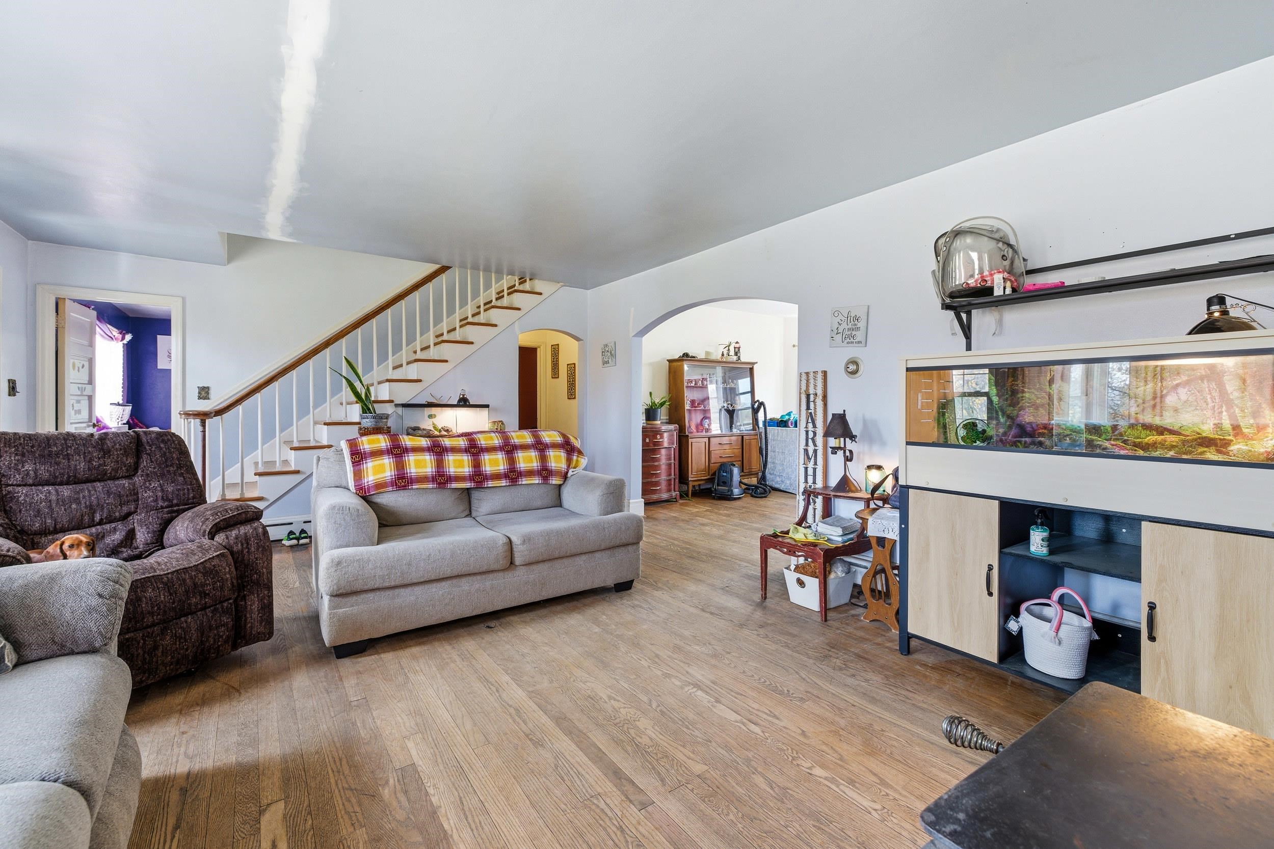 FARMETTE on 5.3 acres in the heart of Luray! A PROPERTY LIKE THIS IS TOUGH TO FIND. This 4 bed, 2 bath home is surrounded by farmland & mountain views. Features tons of natural light, hardwood floors throughout, 2 first floor bedrooms, and a large recently updated kitchen with white cabinets, nice laminate counters and stainless steel appliances. The kitchen also has new floors and a huge pantry, perfect for additional storage. Attached 2-car garage has a 24x14 Upper Bonus/Guest Room great for expanding + the full unfinished basement has room for storage & more! Property includes: spring fed POND, 72x36 BARN with all the accessories: Electric, Hot/Cold Water, Tack Room, Office Space, etc and the entire 5.3 acres is fully fenced. RAISE ANIMALS: horses, goats, pigs... PLANT A GARDEN & LIVE off of this land! New roof installed on the house and garage in November 2025. Additional repairs to be made to the rest of the home in November from recent storm damage. Basement to be fully resealed and many other repairs to be made in the next 6 weeks. Ask agent for more details.