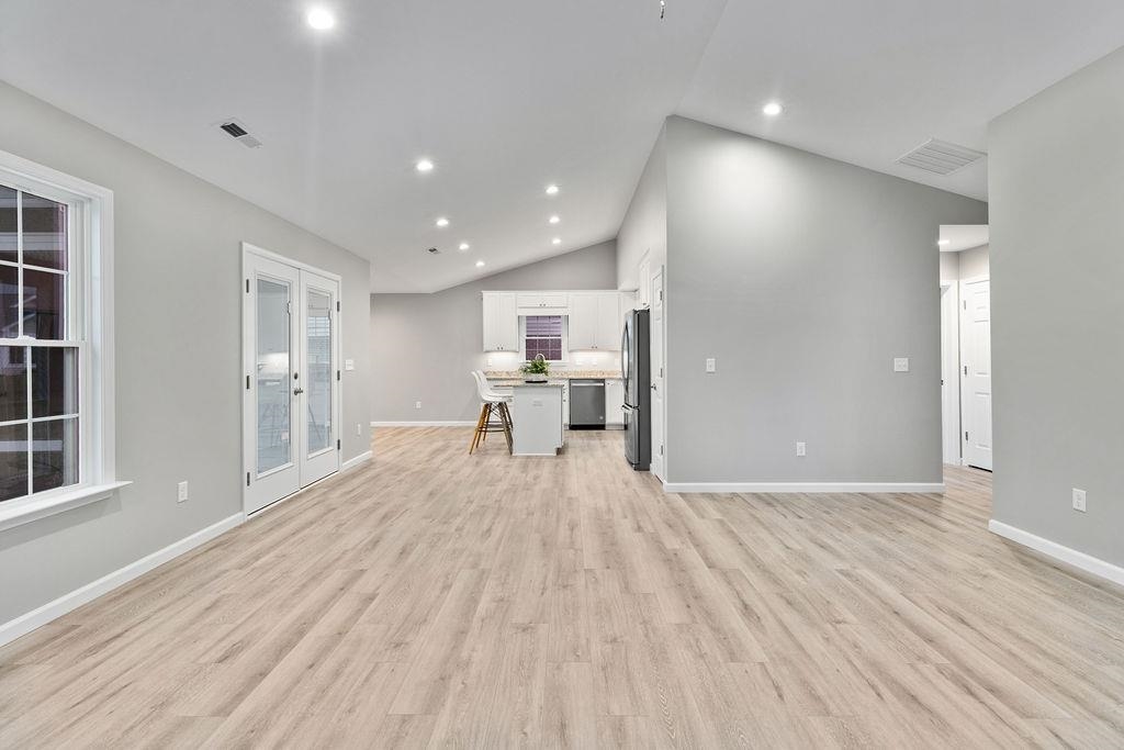 1st Floor Master Bedroom: Attic, PrimaryDownstairs, PermanentAtticStairs, WalkInClosets, BreakfastArea, KitchenIsland, RecessedLighting, VaultedCe