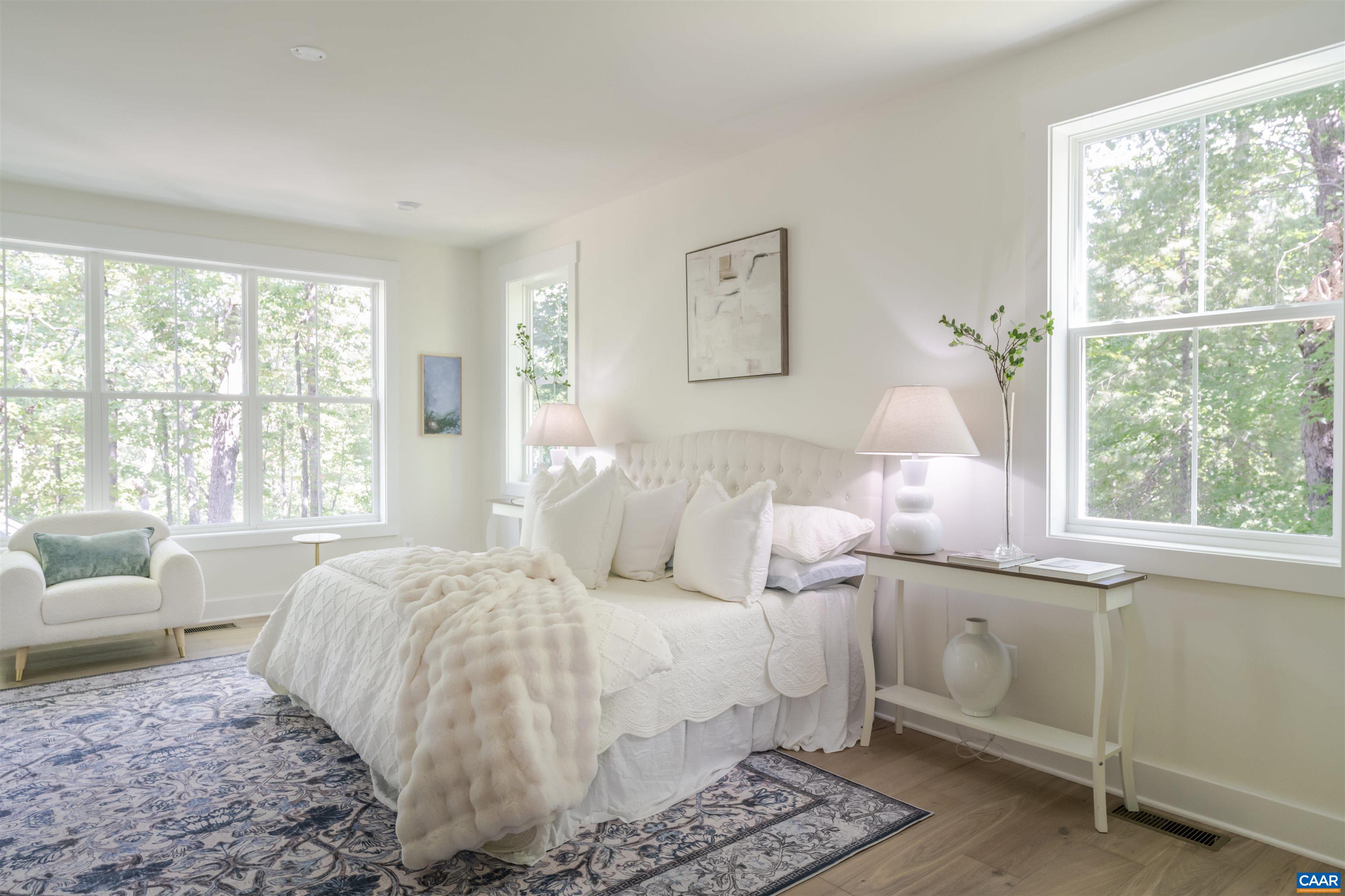 Incredible mountain views less than 10 minutes from downtown Charlottesville! This stunning 5-bedroom, 4.5-bath modern farmhouse sits on over 7 acres and blends timeless style with thoughtful design. A level front yard welcomes you to the charming covered porch, ideal for relaxing while taking in the neighborhood scene. Inside, an open, light-filled floorplan showcases quality craftsmanship at every turn. The chef’s kitchen boasts a 48” gas range, oversized island, and seamless flow to the 2-story great room, where a soaring fireplace with custom live-edge mantle steals the show. Step onto the covered deck to enjoy peaceful year round mountain views. The first-floor primary suite is a private retreat, featuring its own spa-like bath with soaking tub, dual vanities, and an expansive walk-in shower. Upstairs, three spacious bedrooms and two full baths provide room for family and guests. The walkout basement offers even more versatility with a generous rec room, guest suite, and full bath.