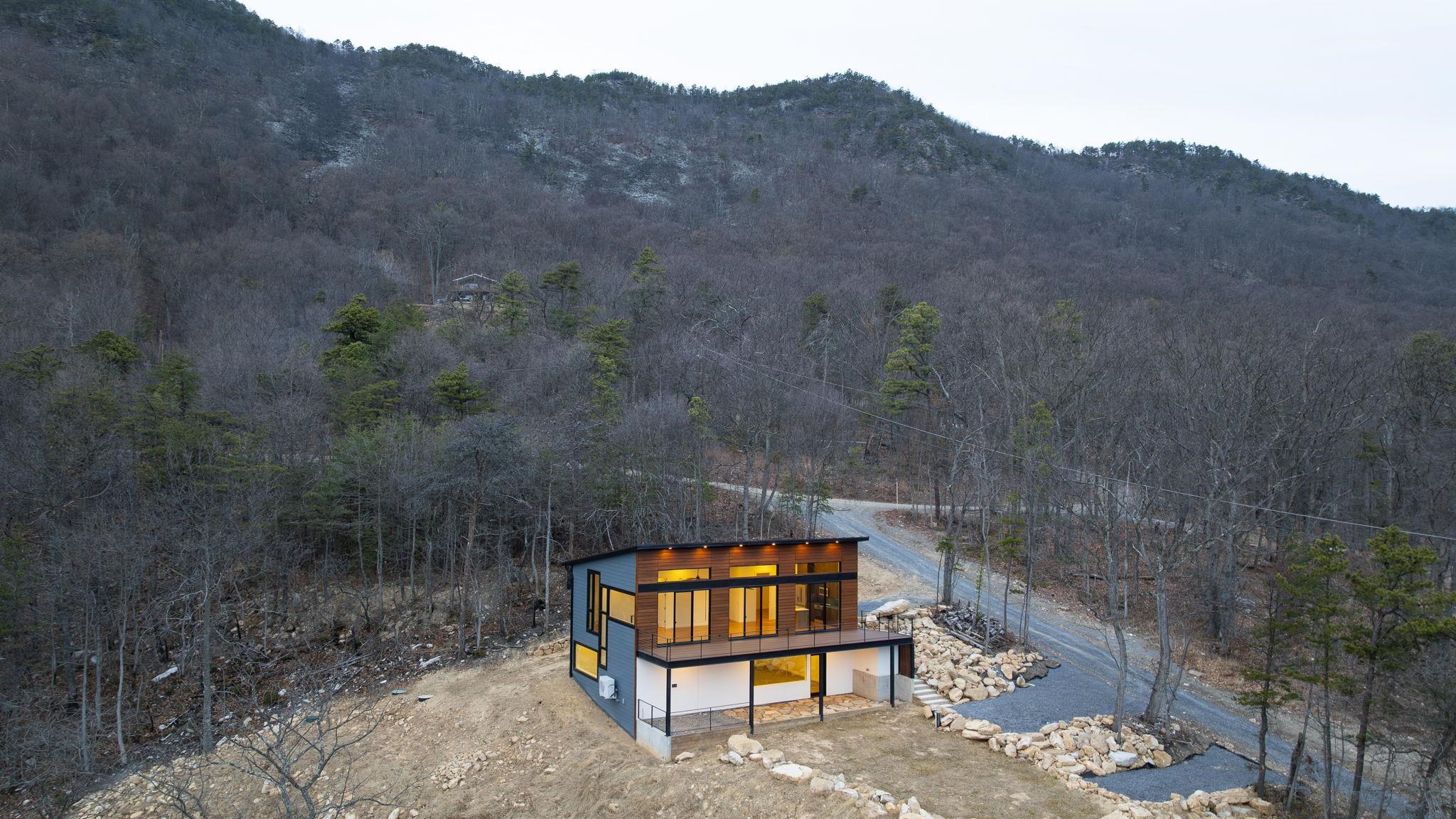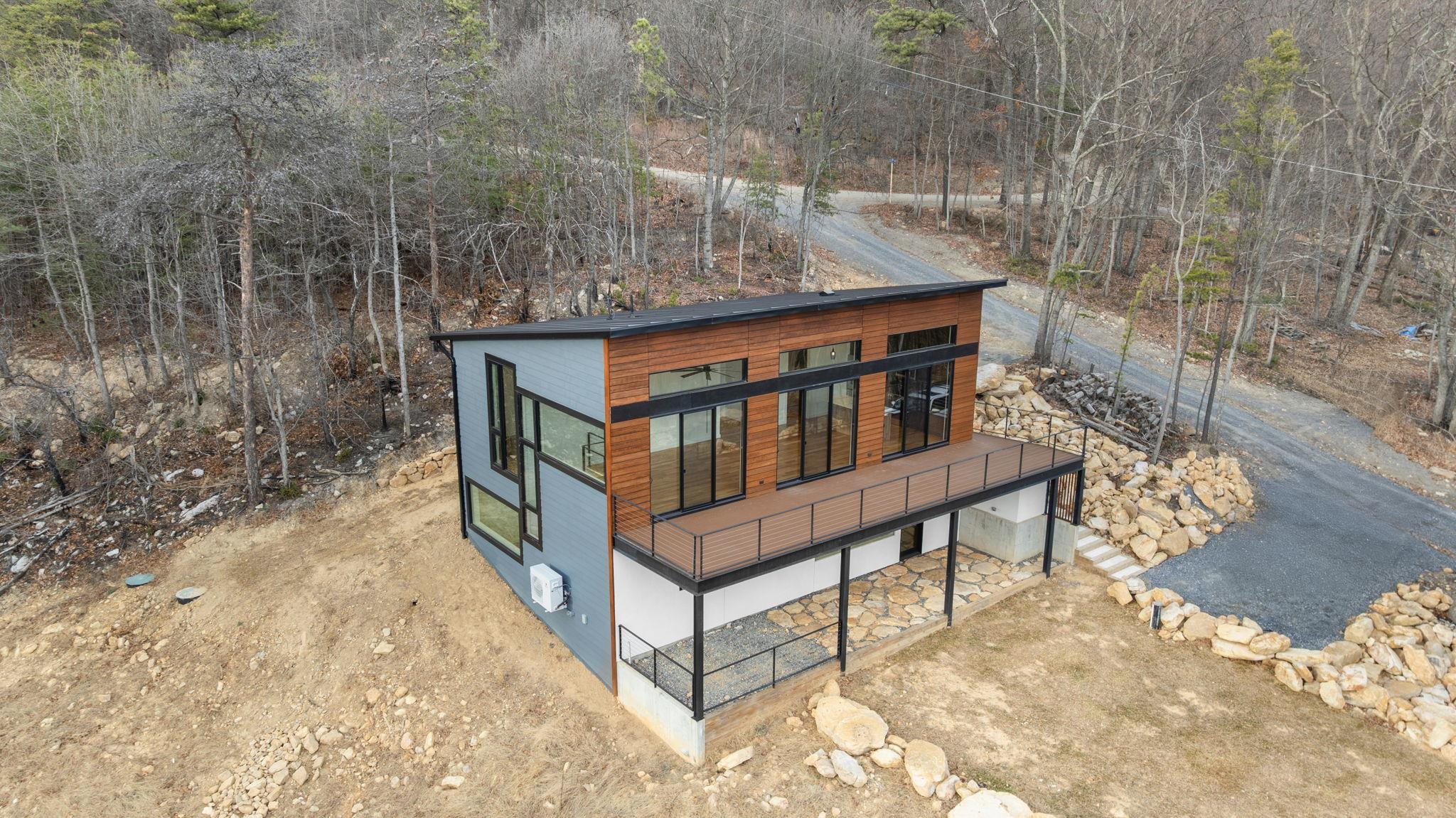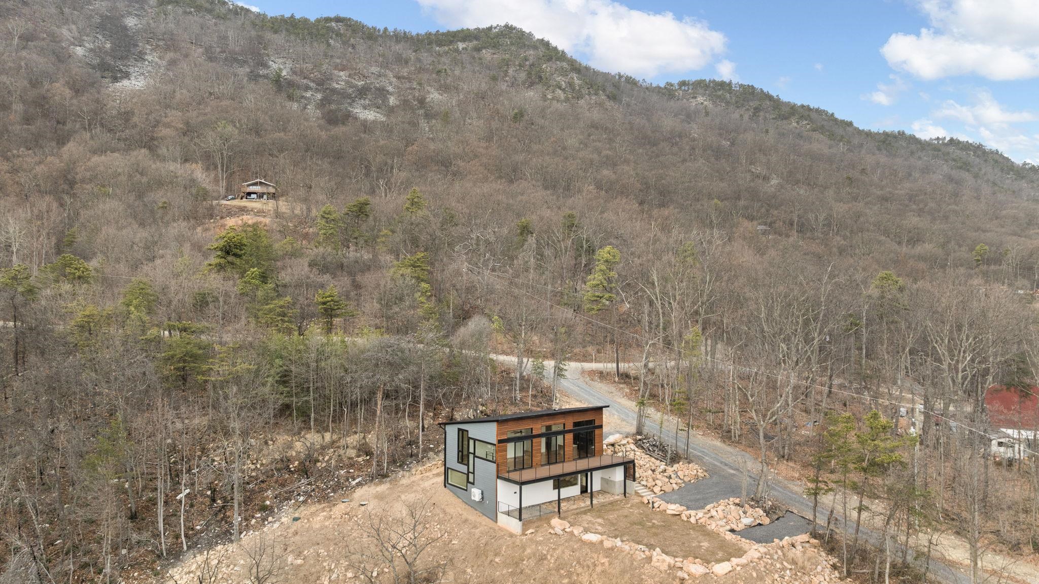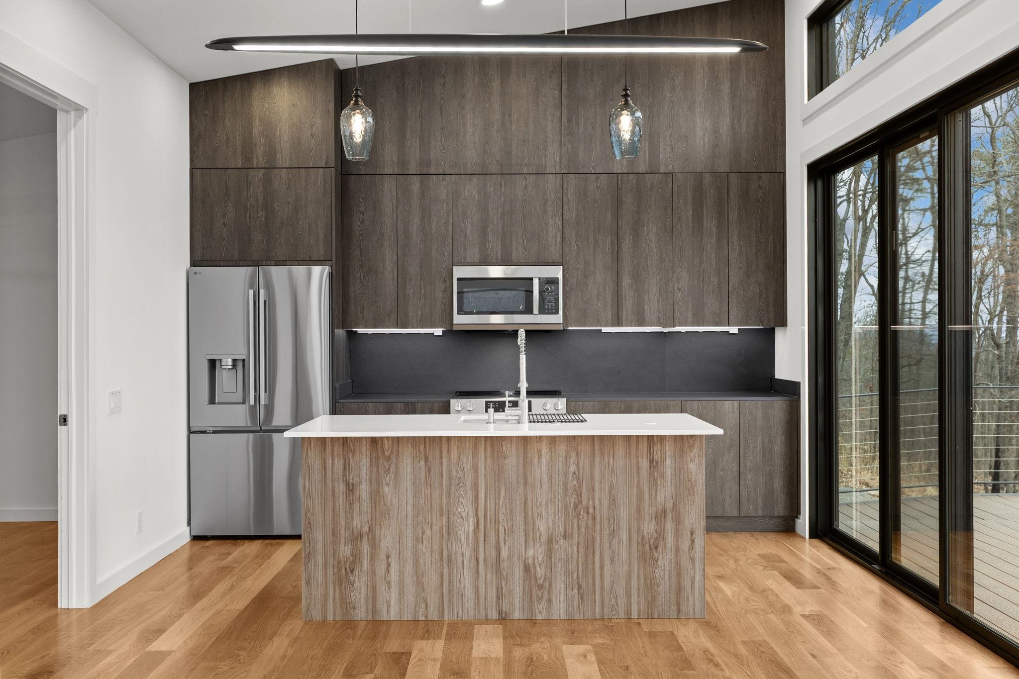 Set into the eastern slope of Massanutten Mountain, this newly completed modern residence captures first light as it rises over the Blue Ridge. Every primary space is oriented to the view. The architecture unfolds across two levels, anchored by a dramatic outdoor terrace that extends the living experience into the landscape and turn the horizon into a daily event. Inside you will find wide plank white oak floors running throughout the main level, finished in a soft satin sheen that reflects natural light without glare. The kitchen is modern and architectural, with smoked tone cabinetry, black leathered stone surfaces balanced by a white Silestone island, and polished Grohe fixtures. This home is designed to endure, visually and structurally. It is equally suited as a full-time residence or a refined mountain retreat. Located in an area that allows Short Term Rentals.
