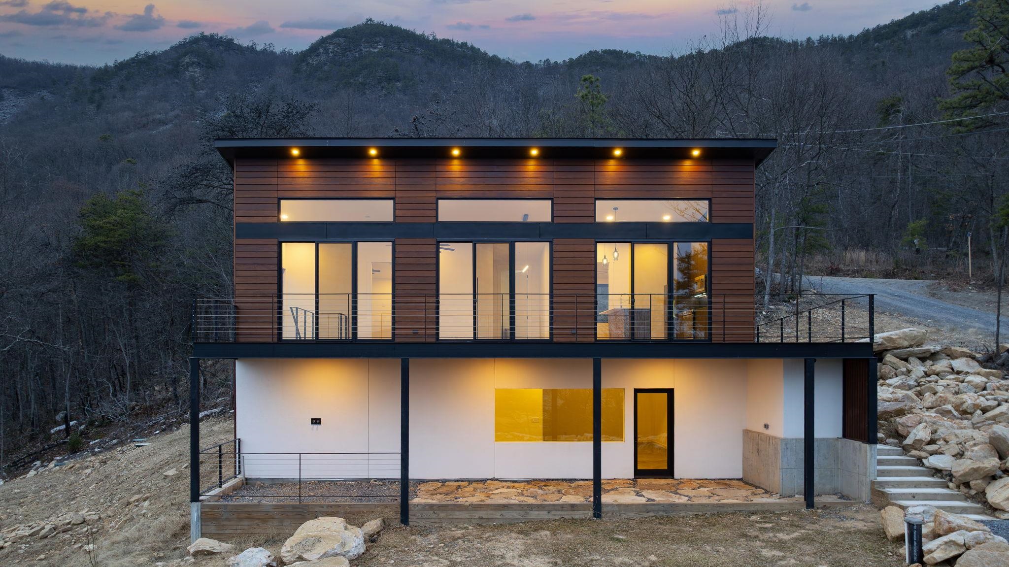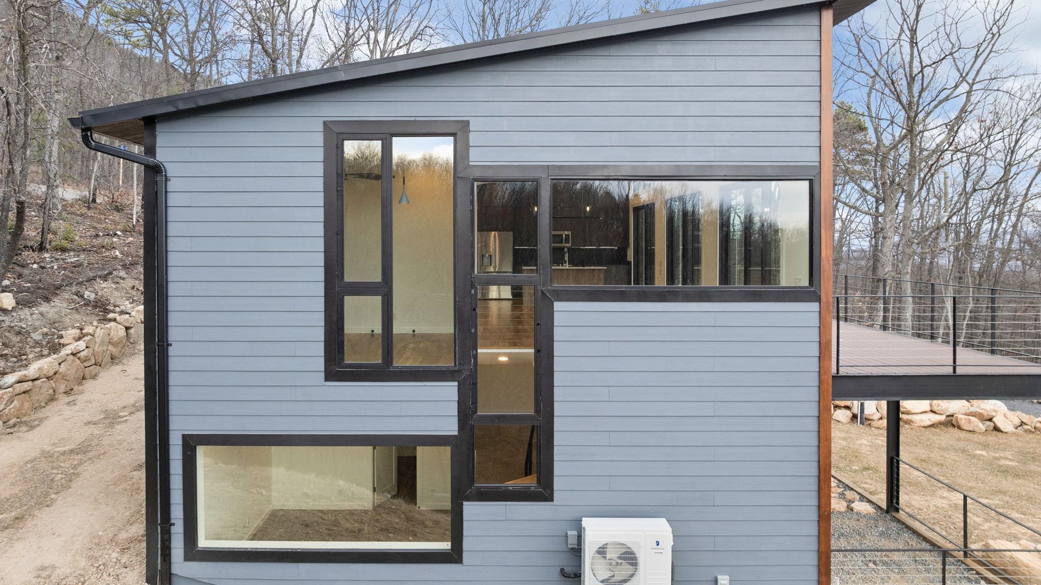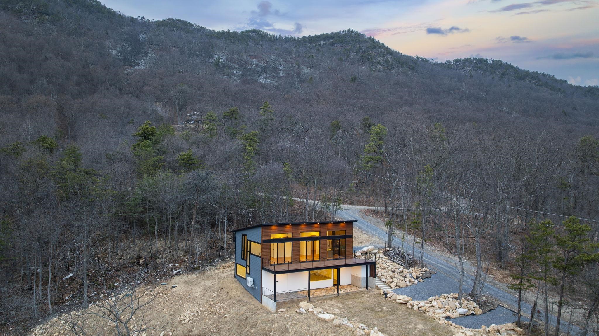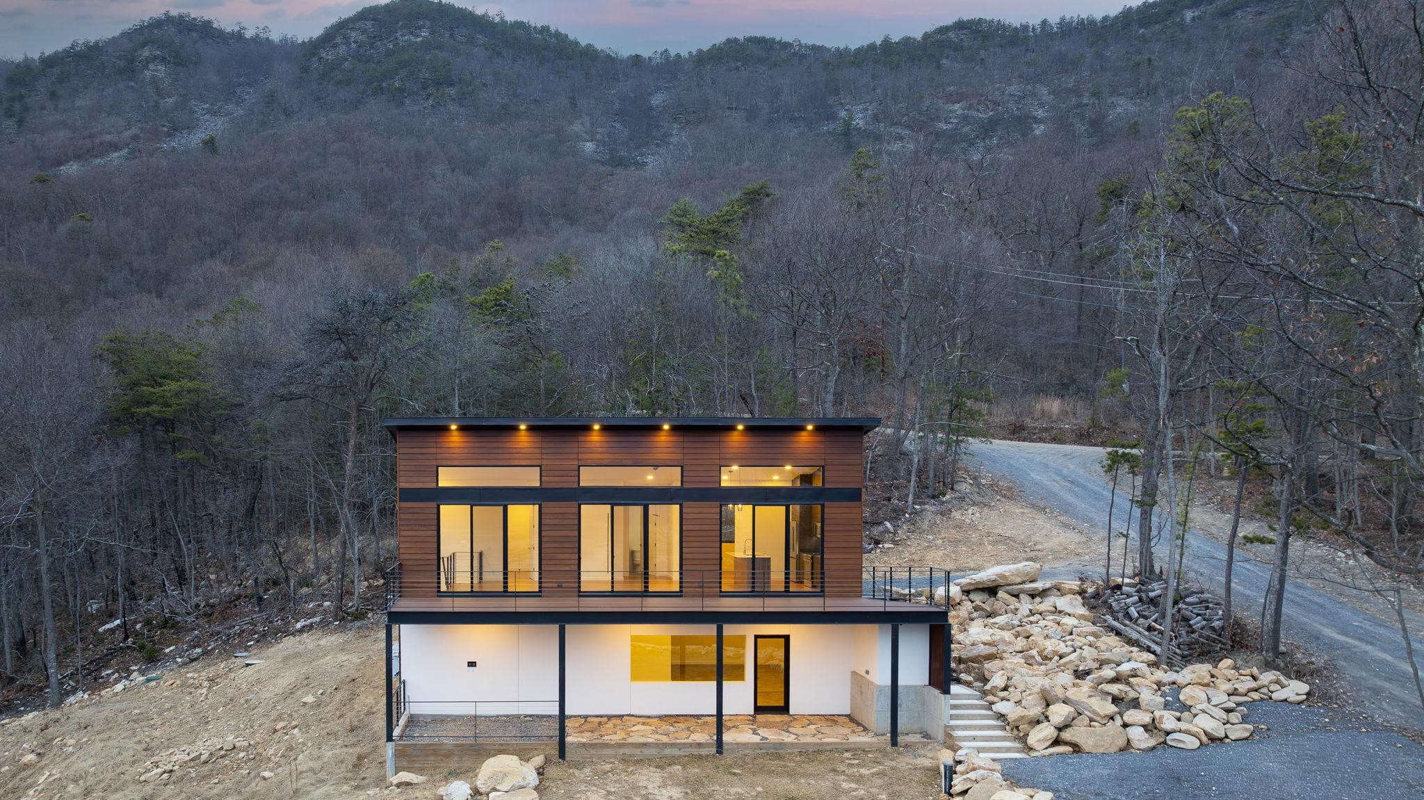 Set into the eastern slope of Massanutten Mountain, this newly completed modern residence captures first light as it rises over the Blue Ridge. Every primary space is oriented to the view. The architecture unfolds across two levels, anchored by a dramatic outdoor terrace that extends the living experience into the landscape and turn the horizon into a daily event. Inside you will find wide plank white oak floors running throughout the main level, finished in a soft satin sheen that reflects natural light without glare. The kitchen is modern and architectural, with smoked tone cabinetry, black leathered stone surfaces balanced by a white Silestone island, and polished Grohe fixtures. This home is designed to endure, visually and structurally. It is equally suited as a full-time residence or a refined mountain retreat. Located in an area that allows Short Term Rentals.