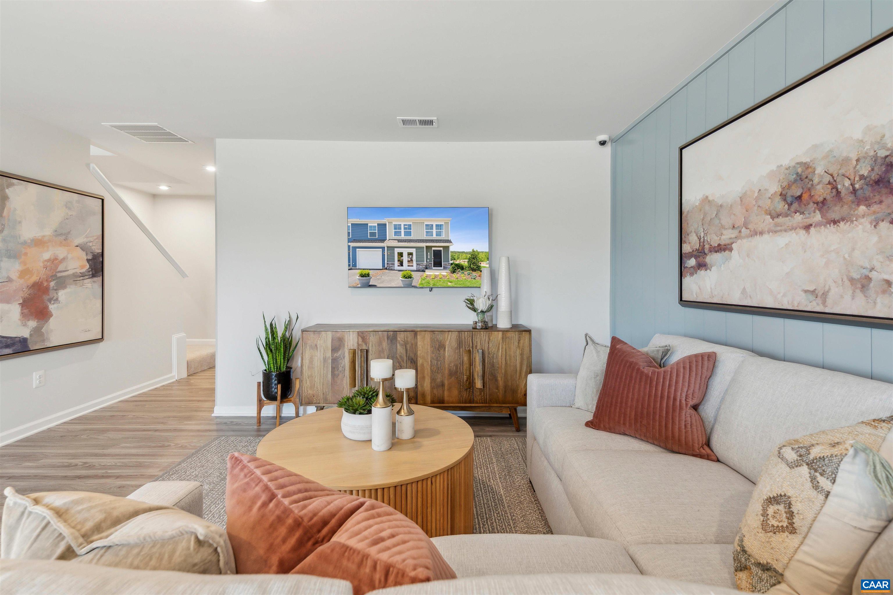 Welcome to The Rutledge - This brand-new home is under construction for move-in with an estimated completion date of July 2026 - where comfort meets style in this modern 3-bed, 2.5-bath townhome. This homesite features spacious common area behind it and will not last long! The spacious main-level family room is perfect for movie nights or entertaining, flowing seamlessly into the open-concept kitchen and dining area. Upstairs, the primary suite offers a private retreat with an en-suite bath for a spa-like experience. Two additional bedrooms and a full bath provide plenty of space for family, guests, or a home office. Enjoy up to $17,500 in incentives for a limited time with our preferred lender. Located at Essence at Creekside—Greene County’s best-priced amenity-filled community with 2 pools, clubhouse, fitness center, pickleball courts, playgrounds, walking trails, and stunning mountain views. Just off Route 29 and minutes from Charlottesville and UVA.*Photos of a similar home