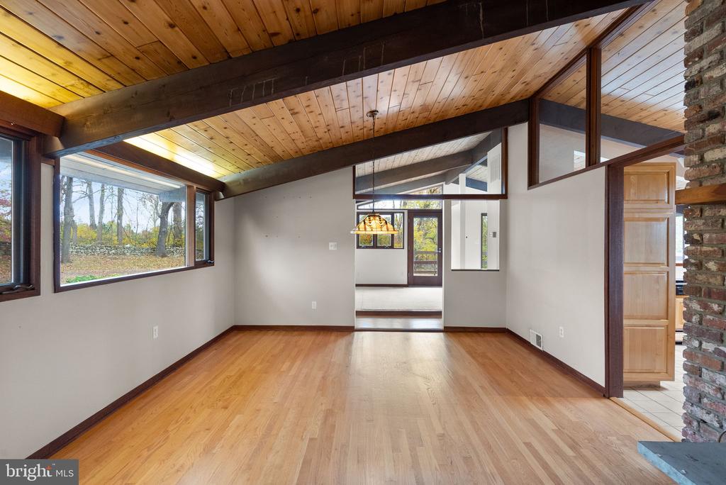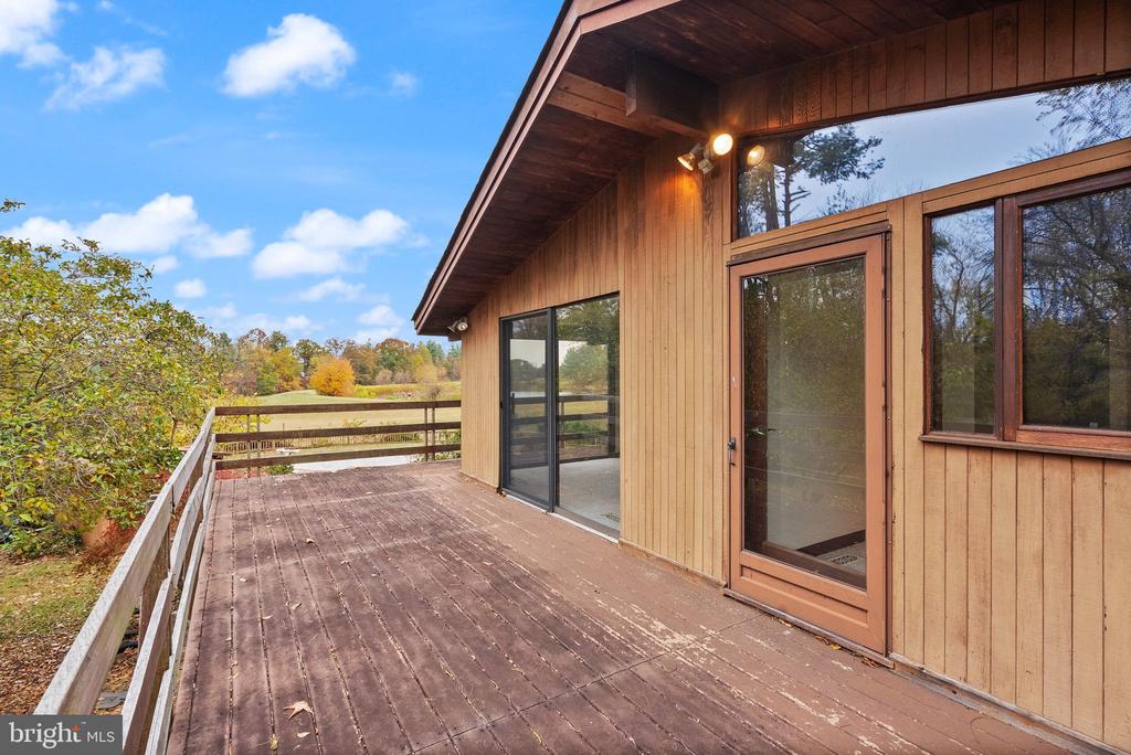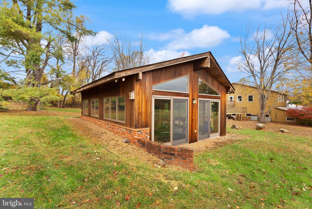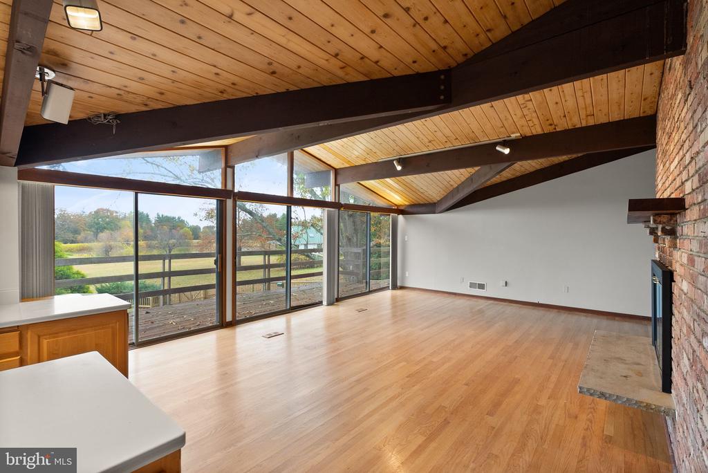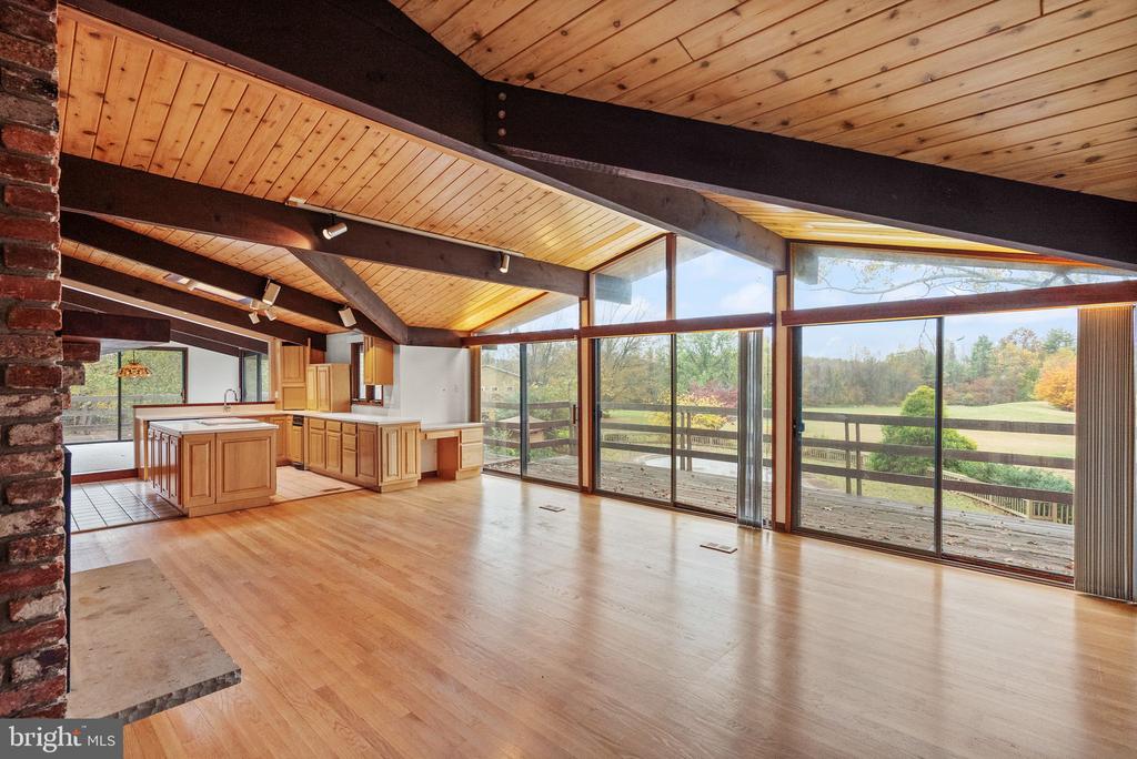 A rare opportunity to own a custom mid-century modern home on a stunning private lot in Warrenton! This architecturally distinctive residence features soaring vaulted wood-beamed ceilings, expansive walls of glass, and open-concept living spaces designed to bring the outdoors in. The main level showcases a dramatic great room with panoramic views, a floor-to-ceiling brick fireplace, and direct access to an oversized deck ”” perfect for entertaining or enjoying peaceful country sunsets. The kitchen offers an open layout with natural wood cabinetry and center island, ready for your modern design touches. The lower level provides walk-out access and endless possibilities for recreation, home office, or guest space. The property's exterior is equally impressive, with mature trees, a fenced yard, and an in-ground pool awaiting restoration ”” offering the potential to create a true backyard retreat. The property also includes an existing exercise building, designed to match the main home, complete with a full bathroom ”” ideal for a private studio, guest house, or future accessory dwelling unit (ADU). Nestled on a serene parcel with rolling countryside views, this home combines privacy, character, and space ”” all within minutes of down