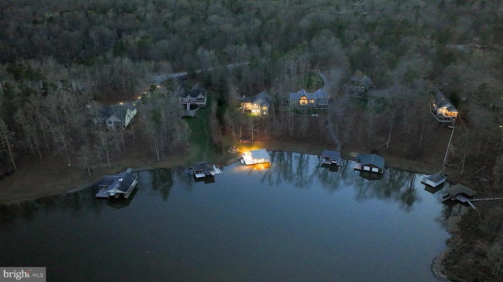 Welcome to lakefront living on the public side of Lake Anna in the Freshwater Estates community, ideally positioned for convenient access to everything the lake has to enjoy. This custom-built home delivers a seamless blend of comfort, space, and year-round living, all set within a quiet, protected cove. With five bedrooms and three full bathrooms across two levels, the home offers generous space for both everyday living and hosting. The interior is highlighted by vaulted ceilings and a striking wood-burning stone fireplace that anchors the main living area, creating a warm and inviting feel. The family room flows seamlessly into the kitchen, featuring custom cabinetry, stainless steel appliances, and granite countertops, along with a spacious island ideal for gathering. Designed to take full advantage of its setting, the home captures water views from nearly every room, making the lake a constant backdrop. Step outside to a waterfront setting thoughtfully designed for both relaxation and recreation. A private covered boathouse with two slips””one equipped with an electric lift””pairs with a spacious dock to create an exceptional setup for life on the water. Tucked within a wide, protected cove, the property invites swimming, kaya