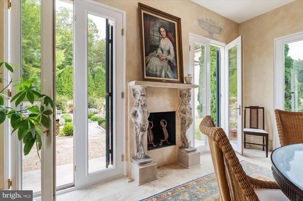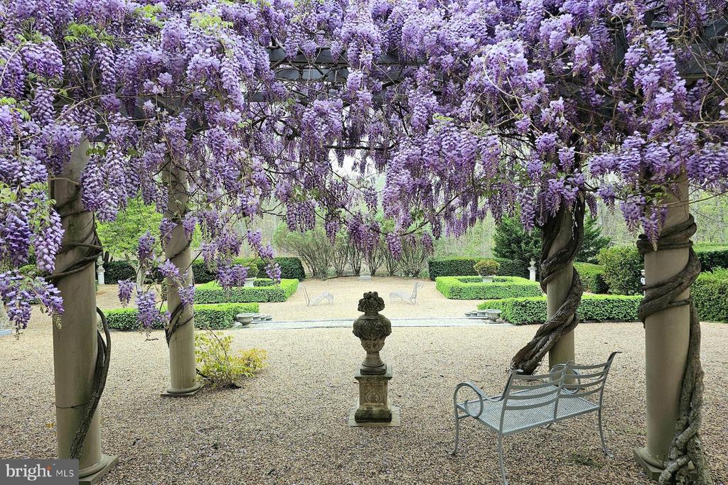 Set amid a patchwork of storied farms and unspoiled landscapes, this distinguished property captures the essence of European elegance while embracing the beauty and bounty of rural Virginia. As you approach the circular cobblestone drive and pass the fountain, double solid mahogany entry doors - locally crafted - welcome you to a home designed for both beauty and function. Inside the Main Residence, limestone floors, a sleek gourmet kitchen, and a private wine cellar anchor interiors that radiate warmth and refinement. A dry bar connects the gourmet kitchen to the gracious dining room, where a fireplace creates an inviting backdrop for winter gatherings. Expansive windows frame sweeping vistas, ensuring every room feels connected to the surrounding gardens. A thoughtfully designed Guest Apartment offers its own entrance, kitchenette, fireplace, and spacious bedroom. Ideal for hosting friends and family in complete comfort. The property's grounds are a living masterpiece. Meticulously designed with native plants and pollinator-friendly landscaping, every pathway reveals a new discovery. The gardens themselves documented and made part of The Garden Club of America Collection at the Smithsonian's Archives of American Gardens. Highlig