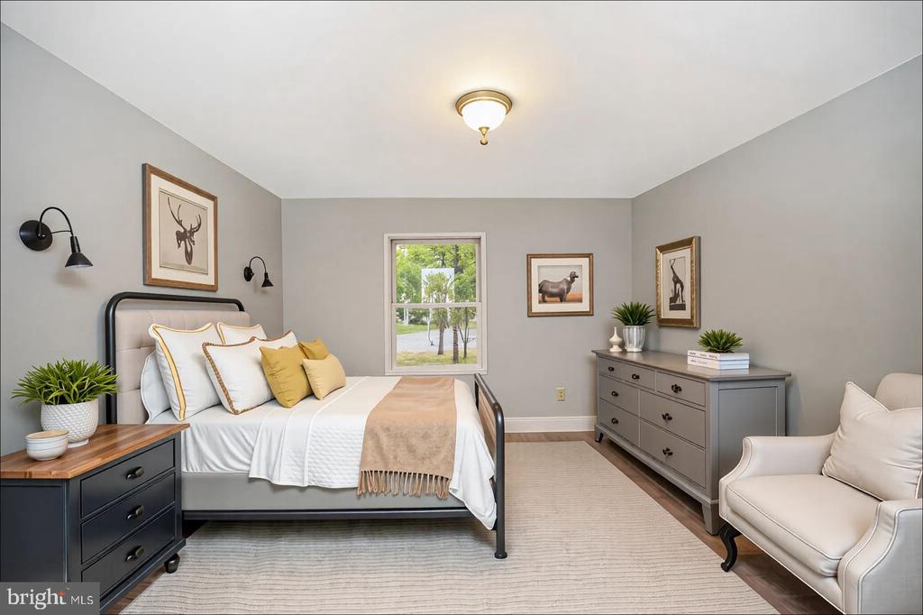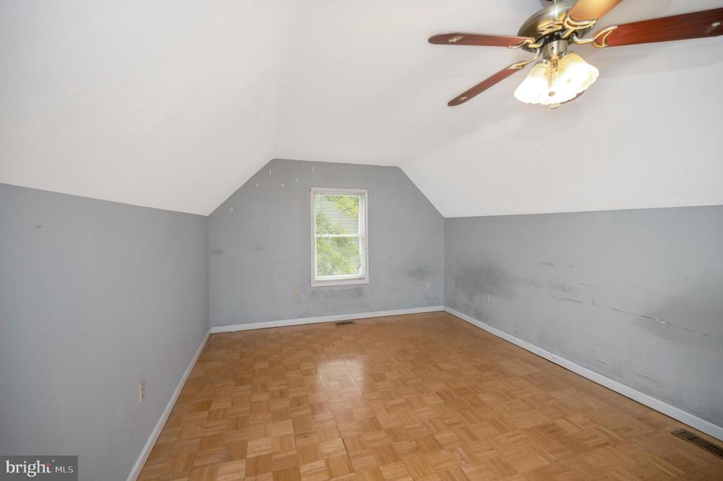 Needed: TLC and a fresh spruce up! ( painting, flooring, fixtures....your vision). Surprise size rooms including two upper parquet floored bedrooms. There is a skylight in the upper loft area. There is a main level bedroom with a walk in and walk thru closet. A protected covered entrance brings you into an oversize living room which is large enough to include dining. The vinyl floored Eat-In-Kitchen has oak cabinetry & formica counter tops plus a laundry closet center. Exterior living includes an 11.5 x 8 deck overlooking a large level backyard. It steps onto a 12 x 12 patio. Visualize spa space or a fire pit area. The HVAC is installed 2023.