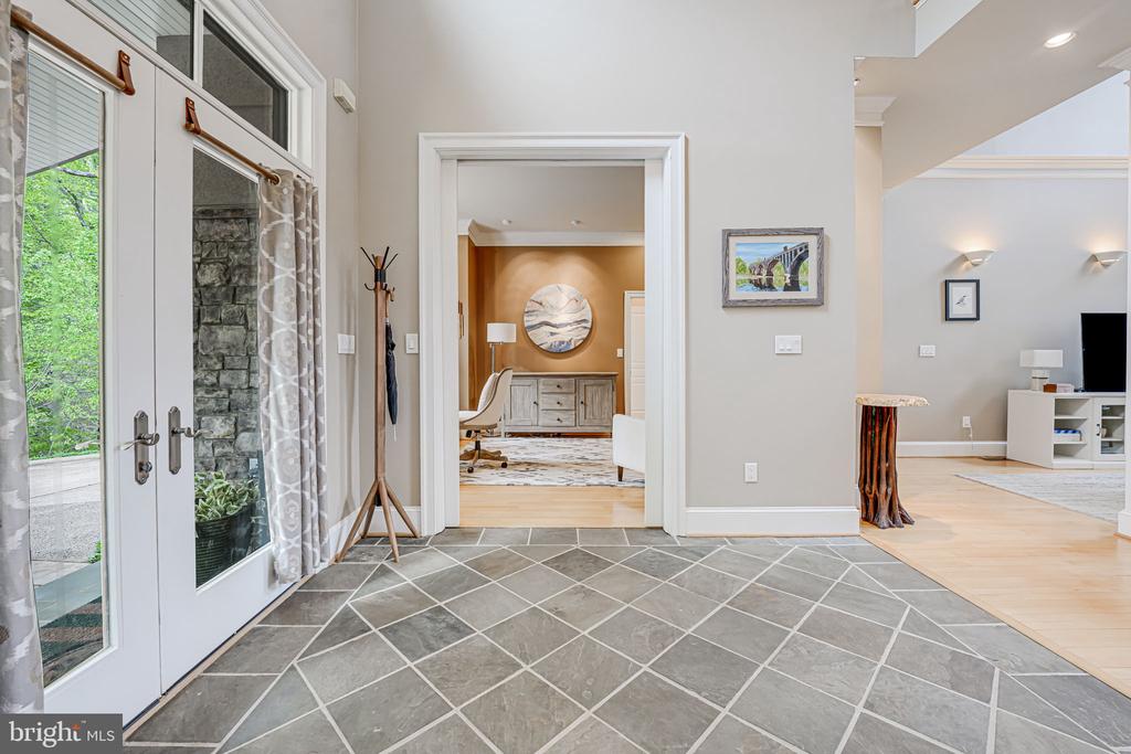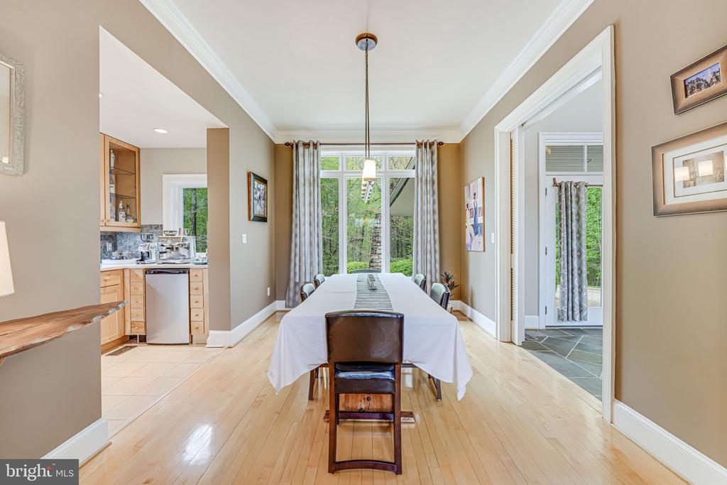 Still showing as the contract has a kick out claiuse***This five-star contemporary home is a wildlife-lover's retreat over the river. Hidden from the street by woods in front and the Rappahannock river in back, it's nestled in privacy. Step into the two-story slate foyer with a substantial office to the left and a dining room and butler's pantry to right. Straight ahead is the living area with 20-foot ceilings, stone fireplace, wood floors, and a stretch of windows that let in light and a spectacular view of the woods and river. The modern kitchen is large with light wood cabinetry, quartz counters, French-door refrigerator with built-in soda maker, gas range, and a length of wall bar made from George Washington's Whiskey Distillery walnut. The connected eat-in breakfast room has more of the gorgeous view with an attached screened porch, fabulous for bird watching. A must see! At the opposite of the living space is an additional half bath, with double doors leading to a spectacular primary suite. Tall casement windows curve around the river end of the room, creating a nook that is perfect for a king bed. There's a custom walk-in closet with plenty of room for two and a newly-remodeled primary bathroom with heated marble floors, do