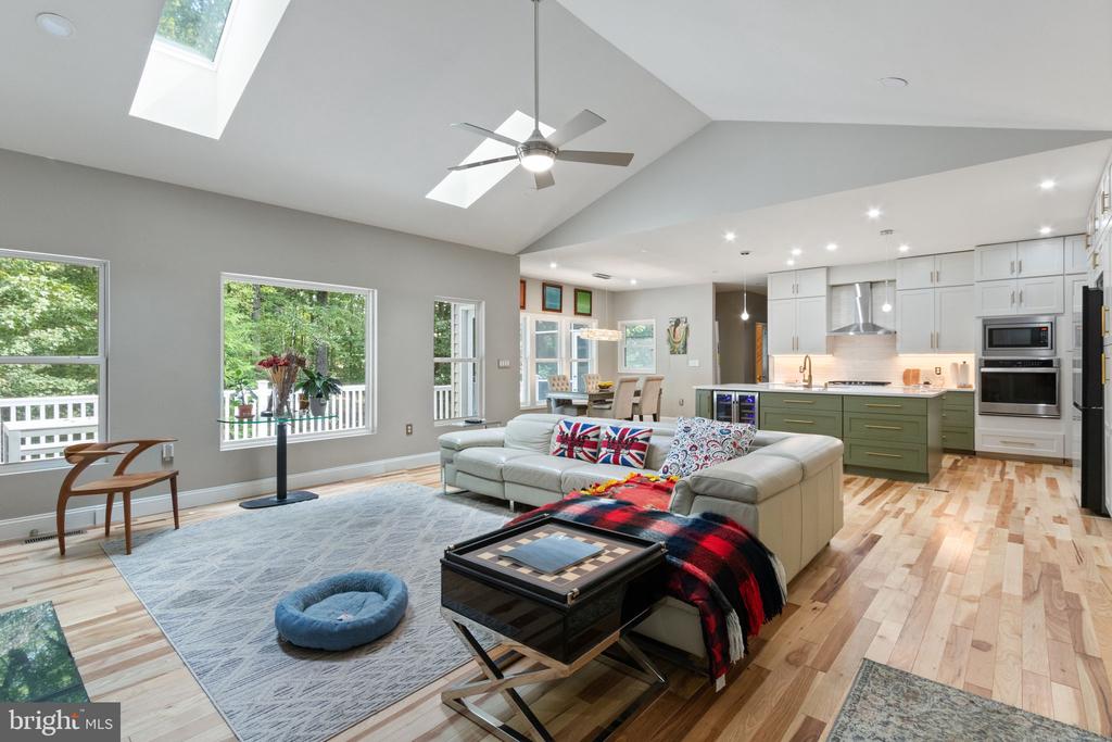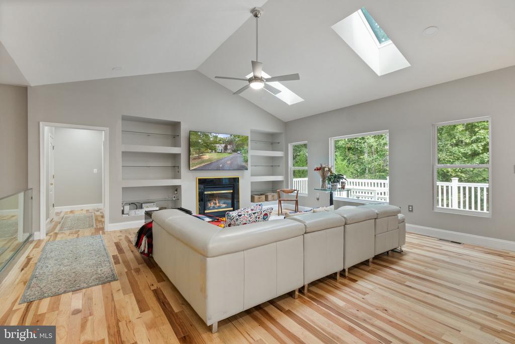 Highlights include soaring ceilings, a grand fireplace with built-in shelving, and an updated chef's kitchen that opens to the main living area. Enjoy year-round outdoor living with a newly installed deck and a screened-in porch overlooking your private, wooded lot.