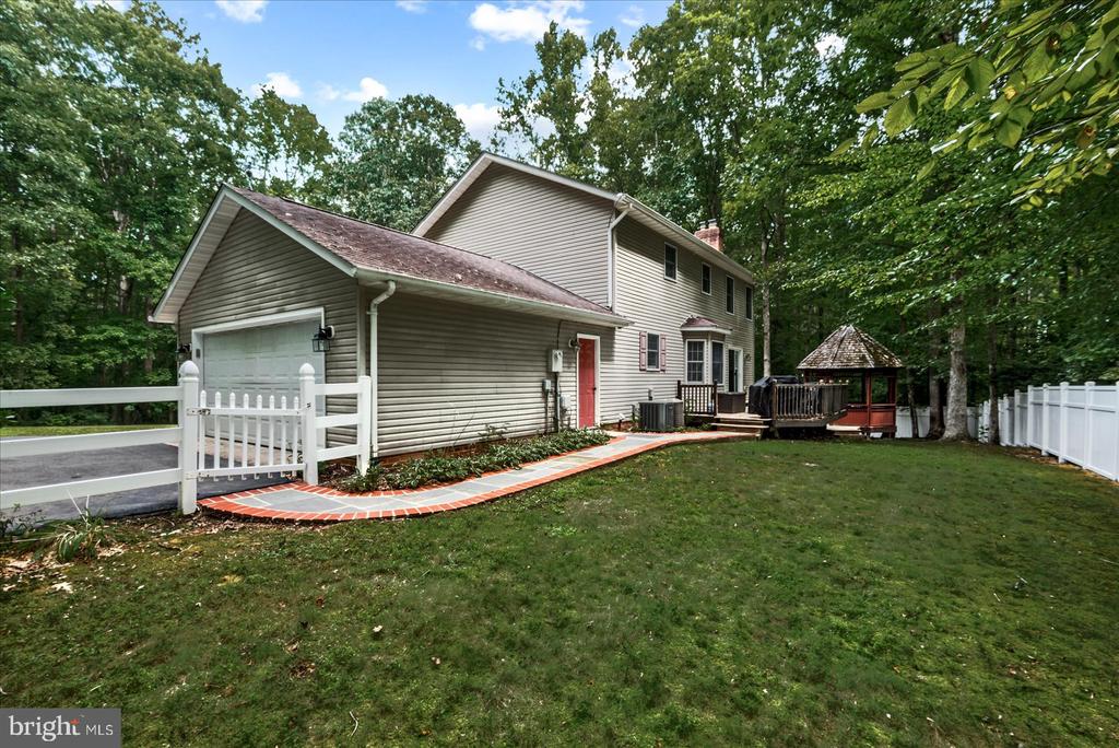 Nestled in the serene community of The Laurels, this charming Colonial home offers a perfect blend of comfort and functionality. With 2.01 acres of private, wooded land, you'll enjoy a tranquil retreat just moments from everyday conveniences. The inviting interior features a spacious layout with 4 bedrooms and 2.5 bathrooms, ideal for both relaxation and entertaining. Step inside to discover a cozy family room that flows seamlessly into a country-style kitchen, complete with a pantry and modern appliances, including a built-in microwave, dishwasher, and refrigerator. The warmth of the gas fireplace creates a welcoming atmosphere, perfect for gathering with loved ones. The primary bath offers a peaceful escape, while the unfinished basement presents endless possibilities for customization. Outside, the expansive deck invites you to unwind and soak in the natural beauty that surrounds you. Additional structures, including a gazebo and shed, enhance the outdoor experience, providing space for hobbies or relaxation. The property is thoughtfully designed with a side-entry garage and a paved driveway for convenience. As part of a gated community, residents enjoy amenities such as common grounds, jogging paths, and security, ensuring pea