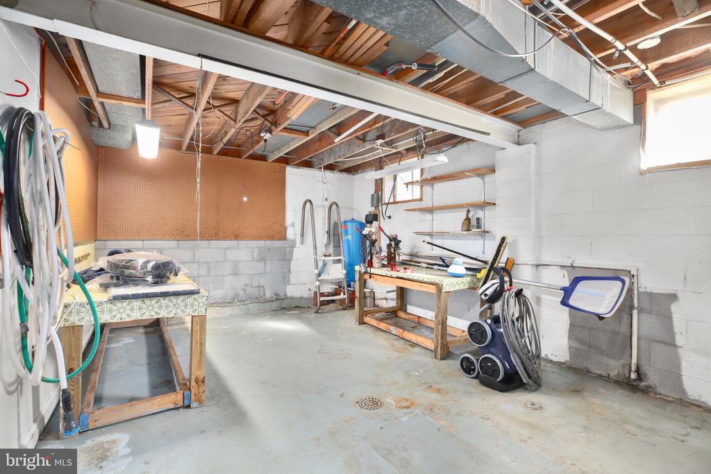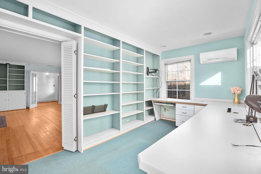 ONE LEVEL LIVING WITH POOL & POTENTIAL FOR SUBDIVIDING 5 MINUTES FROM DOWNTOWN FREDERICKSBURG CORNER LOT WITH OVERSIZED BARN AND PARTIAL FINISHED BASEMENT AND 2 FIREPLACES. COULD BE YOUR NEXT DREAM HOME. BRING THE VISION! A rare opportunity for buyers seeking land, privacy, and development flexibility. This Brick, 3-bedroom, 2.5-bath rancher offers 2,718 sq ft above grade and 2,718 sq ft below grade (680 sq ft finished) on a 6-acre corner lot with a detached garage, no HOA, and subdivision potential for up to three total lots. The existing home is served by well and septic, while the two additional potential lots offer access to public water and sewer, creating strong value and usability options. The main level features hardwood flooring throughout much of the living space. The foyer opens to a formal living room with built-ins, a brick fireplace, and a large front window that brings in natural light. French doors lead to a dedicated home office complete with built-in desks, shelving, and oversized windows overlooking the property. The office flows directly into the formal dining room, which includes hardwood floors, crown molding, and chair railing. The kitchen connects to the dining room and includes tile flooring, white cabinet