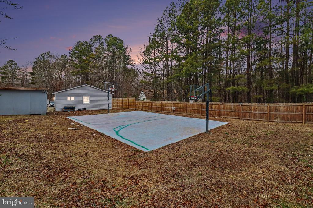 PRICE DROP - Turn this EXCEPTIONAL PROPERTY into the home that you have always wanted. This home will truly be the perfect blend of PRIVACY, functionality, and peaceful country living. Situated on FIVE beautiful ACRES, this one-level home features 3 bedrooms and 2 baths, FULLY FENCED 6-8 foot privacy fencing with gated access, REGULATION BASKETBALL COURT --- A private paved driveway leads to the gate, creating a secluded setting with plenty of space for animals and hobbies --- NO HOA --- The property also includes a detached two-car garage complete with a private unfinished studio apt with plumbing for kitchenette and a full bathroom. MULTIGENERATIONAL living, guests being able to have a private space or the perfect OPPORTUNITY for RENTAL INCOME. --- Conveniently located within easy driving distance to Fredericksburg and Lake Anna, this home combines RURAL TRANQUILITY with nearby amenities. Updates include kitchen and bathrooms 2024, HVAC in 2020, a 30-year roof installed in 2010, and a whole house Generac generator that conveys. Make this property shine for you and your family.